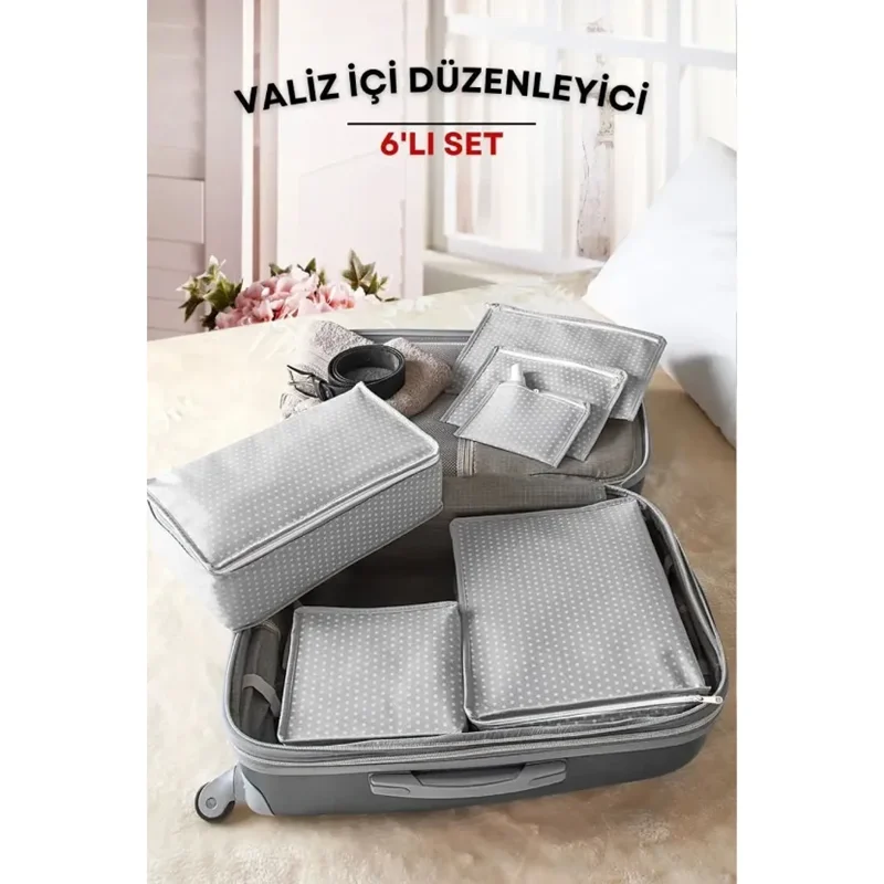 Serstil 6'lı Valiz Düzenleyici Filesiz Set Gri Benekli