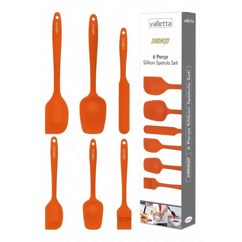 valletta Drongo Isıya Dayanıklı Yanmaz Yapışmaz Silikon Spatula Seti 6 Parça Turuncu