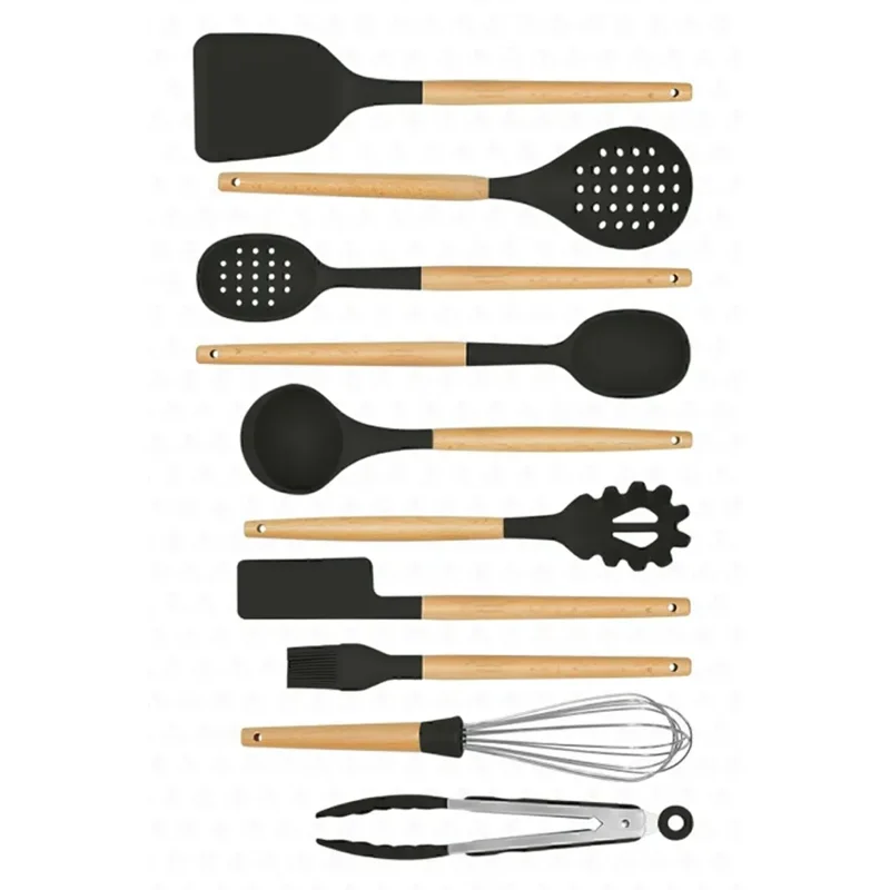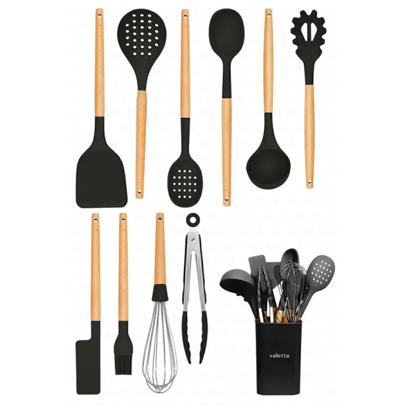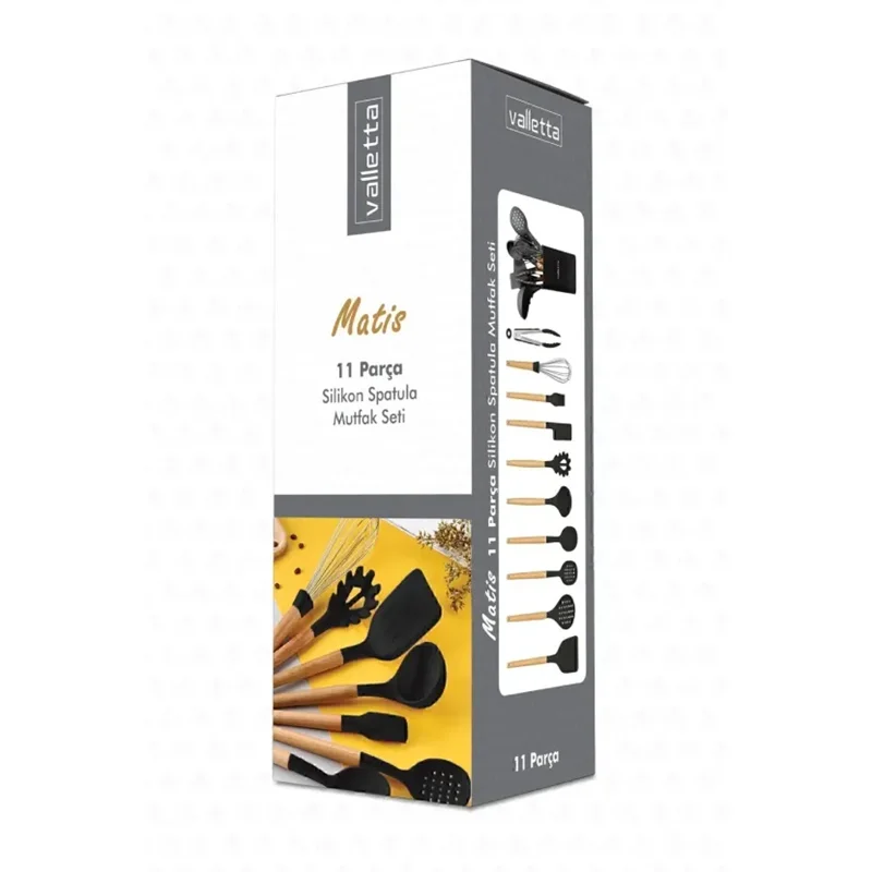 valletta Matis Isıya Dayanıklı Silikon Yanmaz Yapışmaz Standlı 11 Parça Servis Seti Siyah