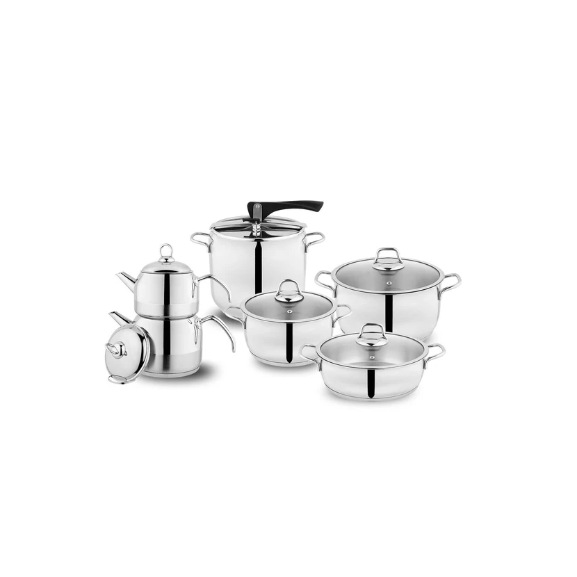 - مزایا و نکات خرید: نگهداری آسان، مناسب برای انواع اجاقها، بررسی تعداد قطعات و حجم قبل خرید؛ مناسب خانواده و هدیه جهیزیه.