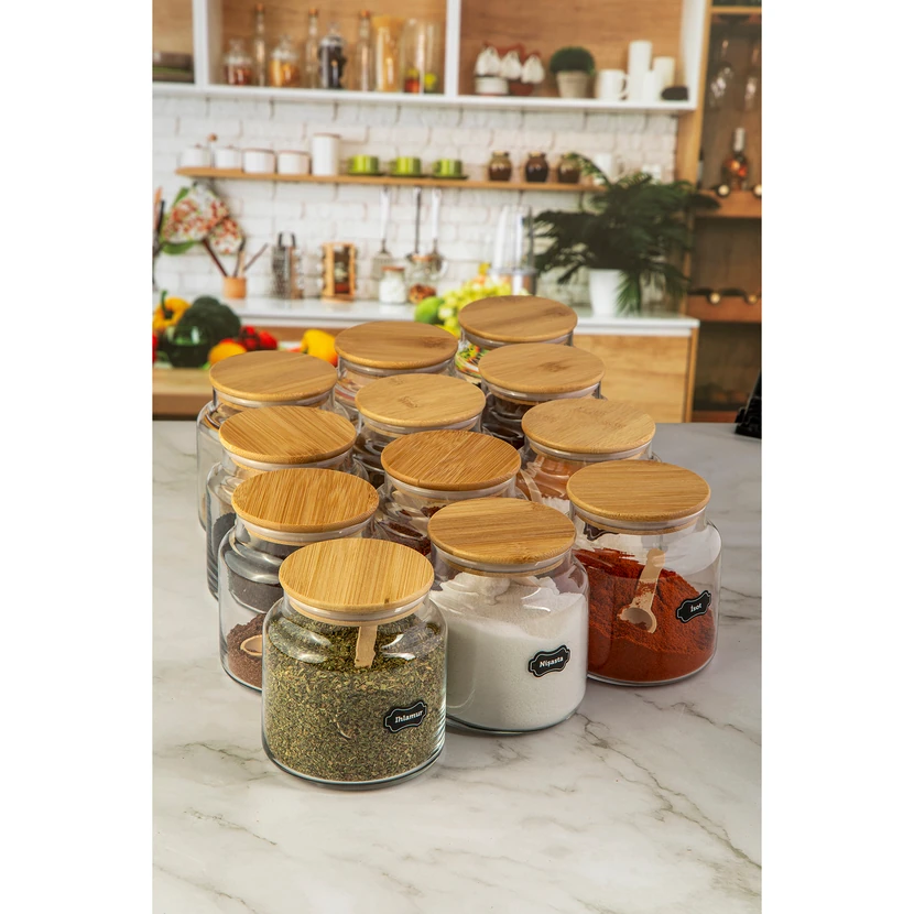 - ست 24 تکه ادویهخوری بامبو کارچیچی هوم شامل جارهای بادوام با درپوش و قاشق است که نظم و زیبایی را به آشپزخانه شما میآورد.