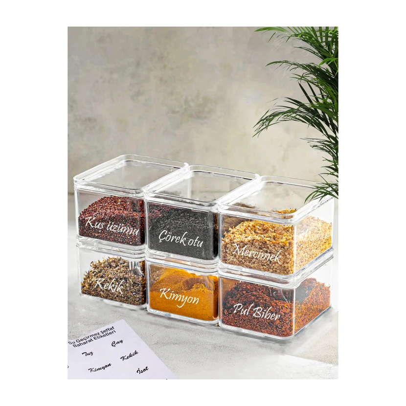 - جنس اکریلیک مقاوم و بستهبندی هوابند کمک میکند عطر و طعم ادویهها حفظ شود؛ برچسب شفاف همراه، نظمدهی و دسترسی سریع را ساده میکند.