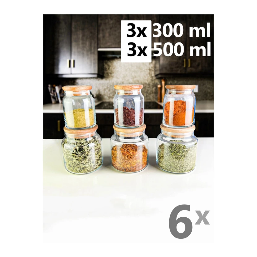 - ست جاادویه 6 عددی لوکس با درپوش بامبو؛ راهحلی شیک و منظم برای نگهداری ادویهها در آشپزخانه و روی میز غذاخوری.