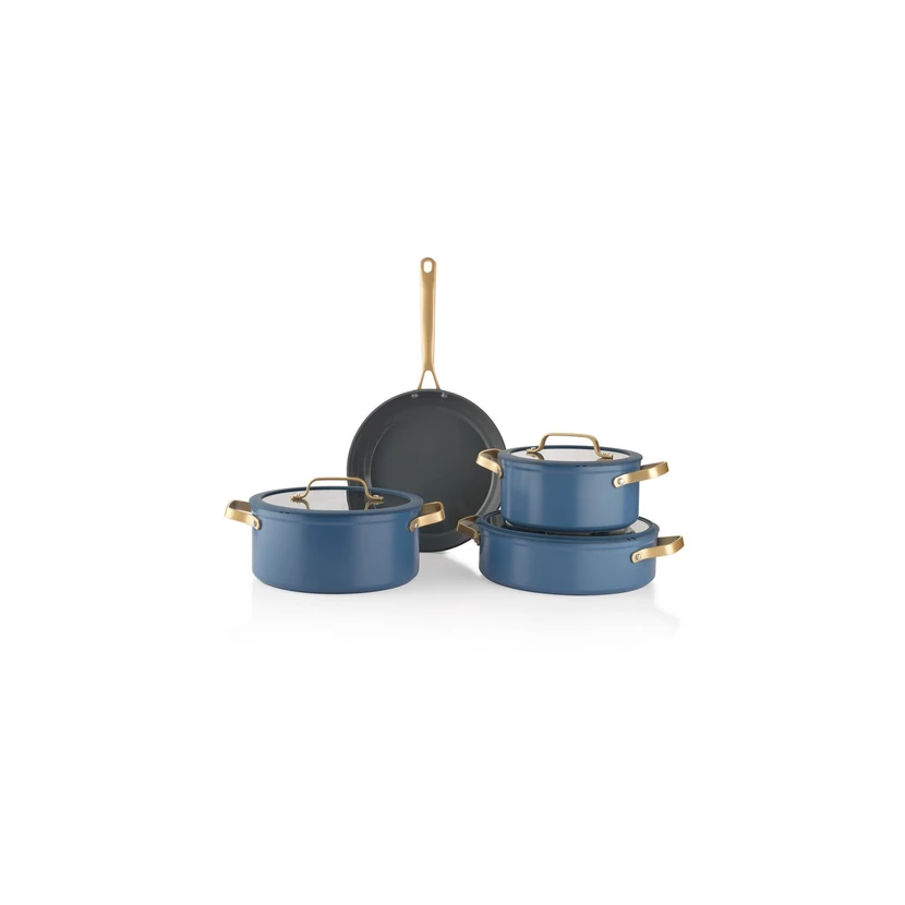 - ست 7 تکه قابلمه سرامیکی شافِر ساپفایر در رنگ آبی طلایی؛ طراحی شیک و بادوام که آشپزی روزمره را زیباتر و سالمتر میکند.