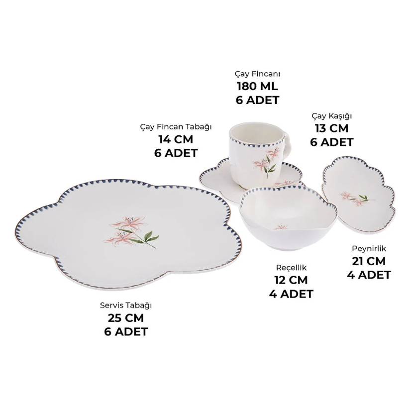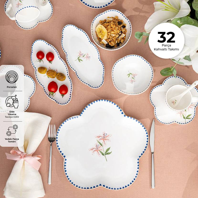 Emsan Lilium Porselen 32 Parça 6 Kişilik Kahvaltı/Servis Takımı
