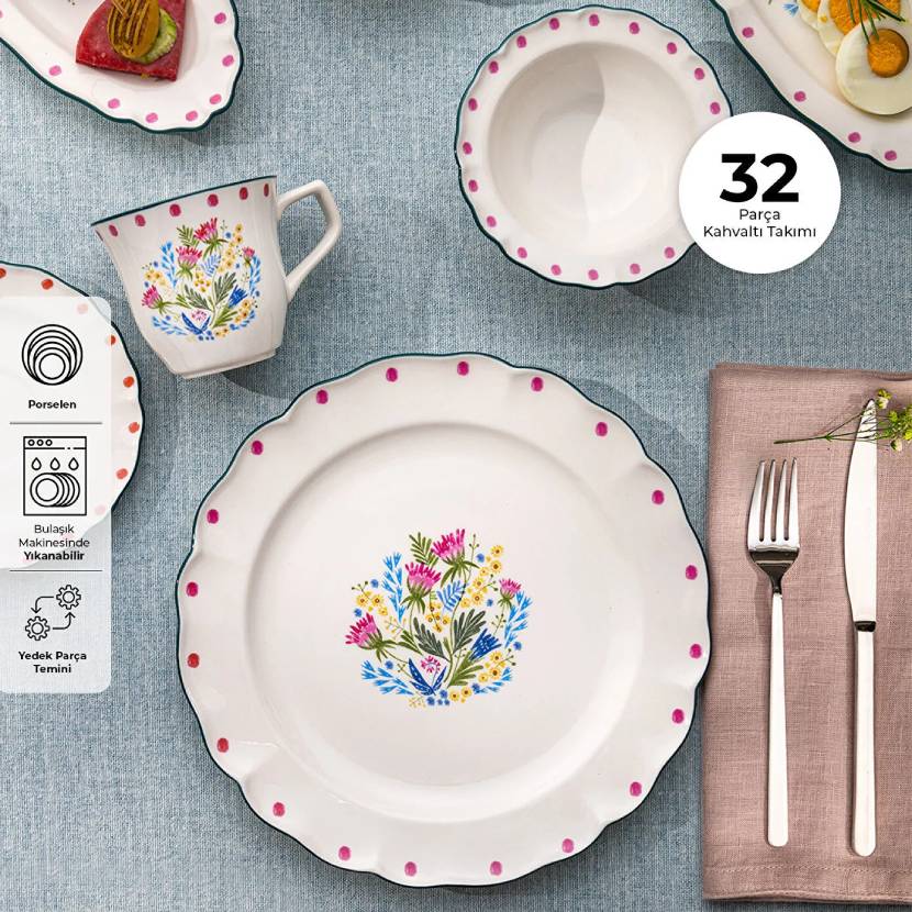 Emsan Yolanda Porselen 32 Parça 6 Kişilik Kahvaltı/Servis Takımı