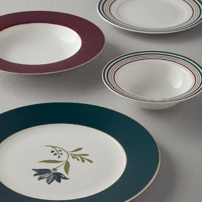 English Home Padova Porselen 24 Parça 6 Kişilik Yemek Takımı Koyu Yeşil-Mürdüm