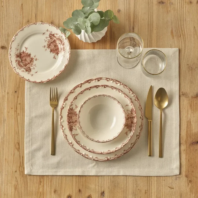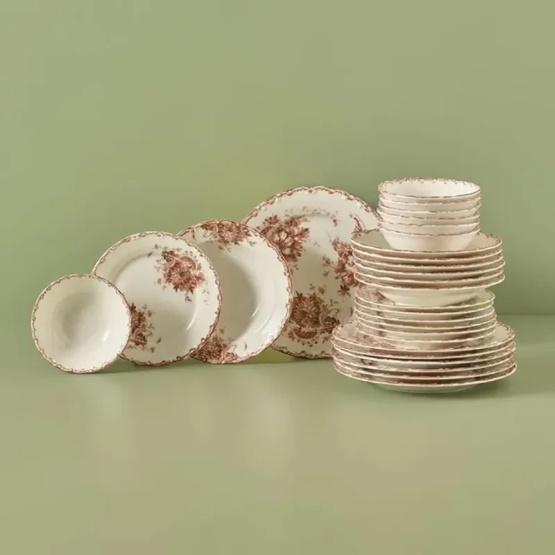 Bella Maison Antique Porselen 24 Parça 6 Kişilik Yemek Takımı Kırmızı