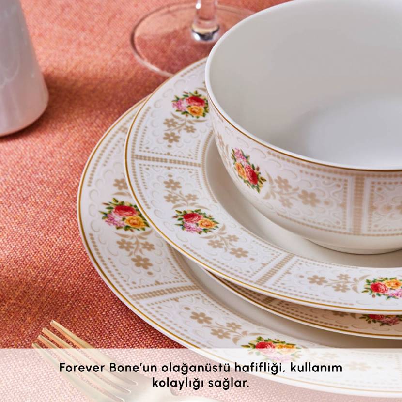 Karaca Forever Bone Reya 24 Parça 6 Kişilik Yemek Takımı