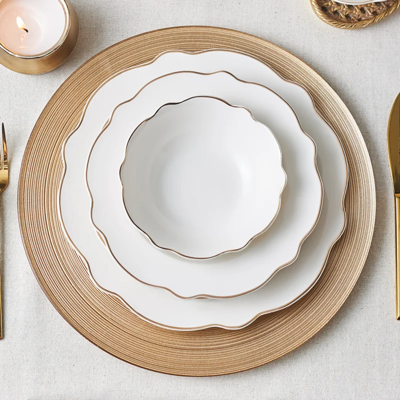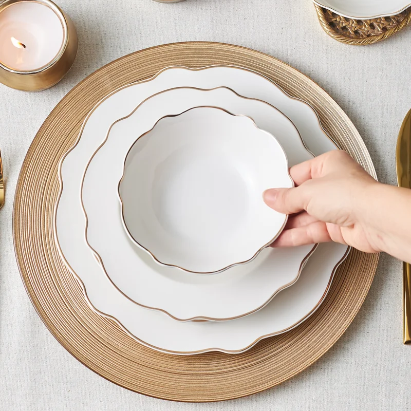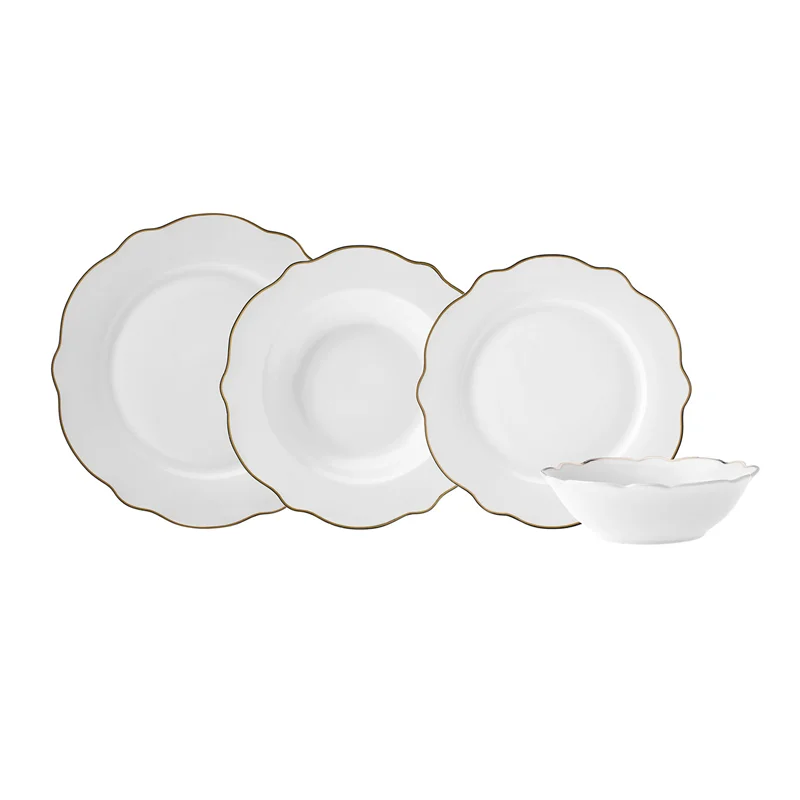 Karaca Daisy Gold Wave Shape 24 Parça 6 Kişilik Porselen Yemek Takımı