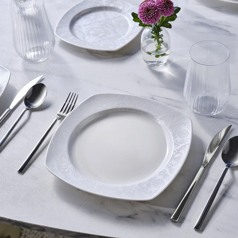 Karaca Farah 24 Parça 6 Kişilik Yarım Kare Creambone Yemek Takımı