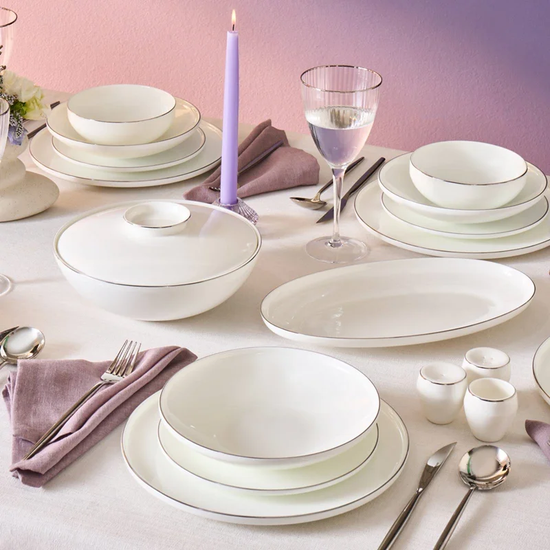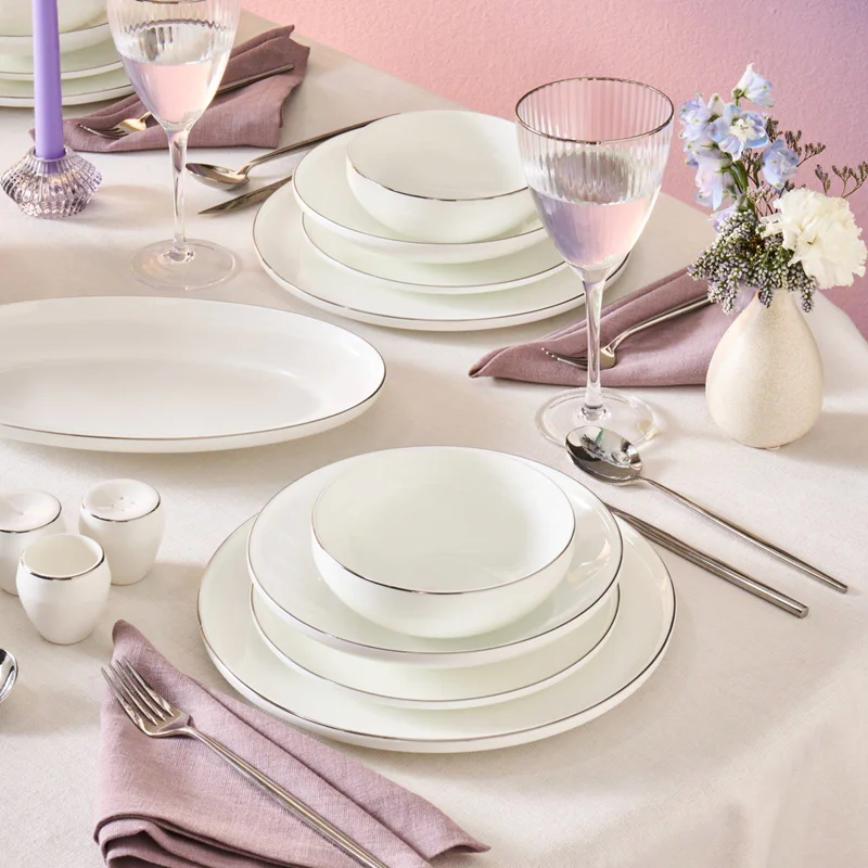 Karaca Fine Bone Meridian 55 Parça 12 Kişilik Yemek Takımı Platin