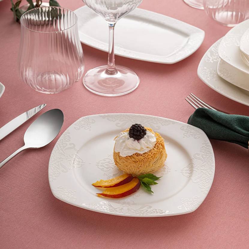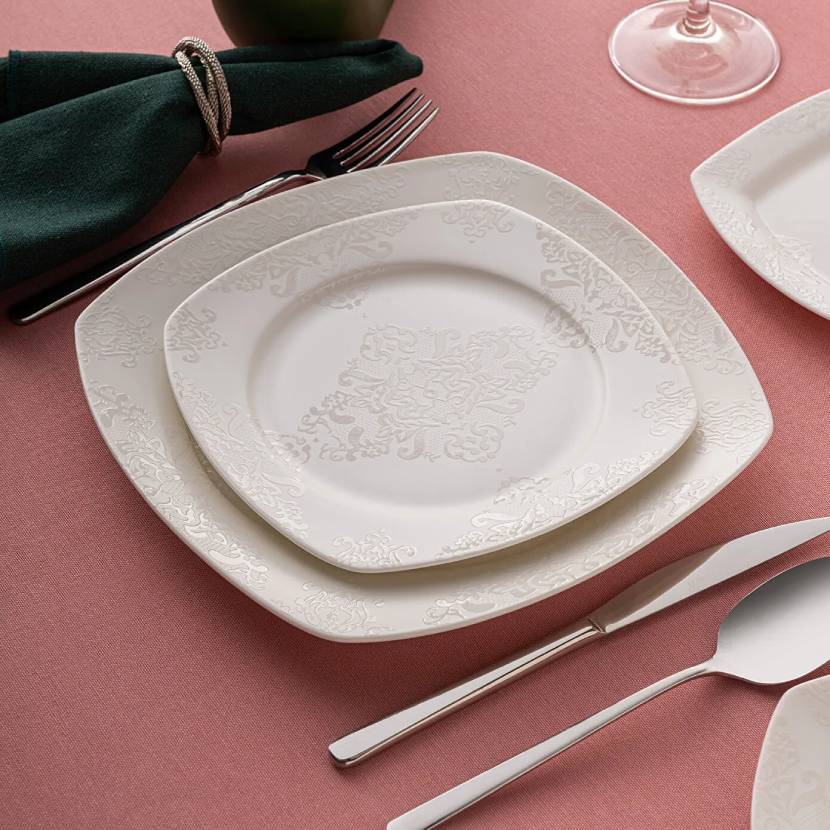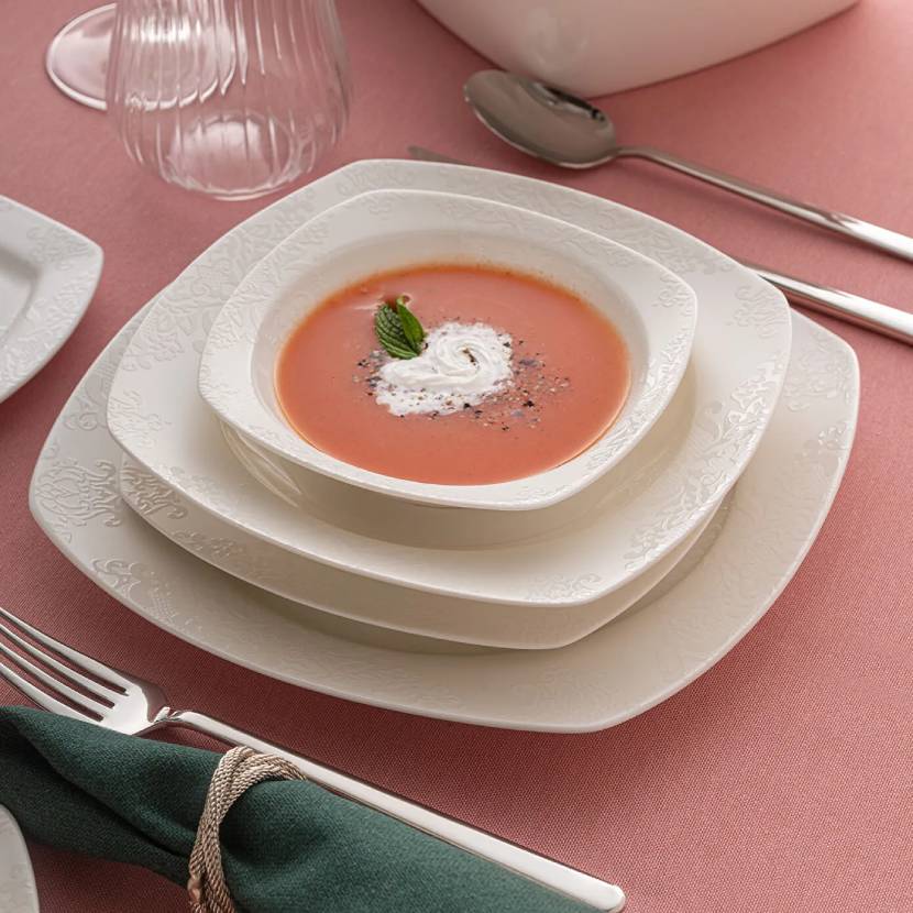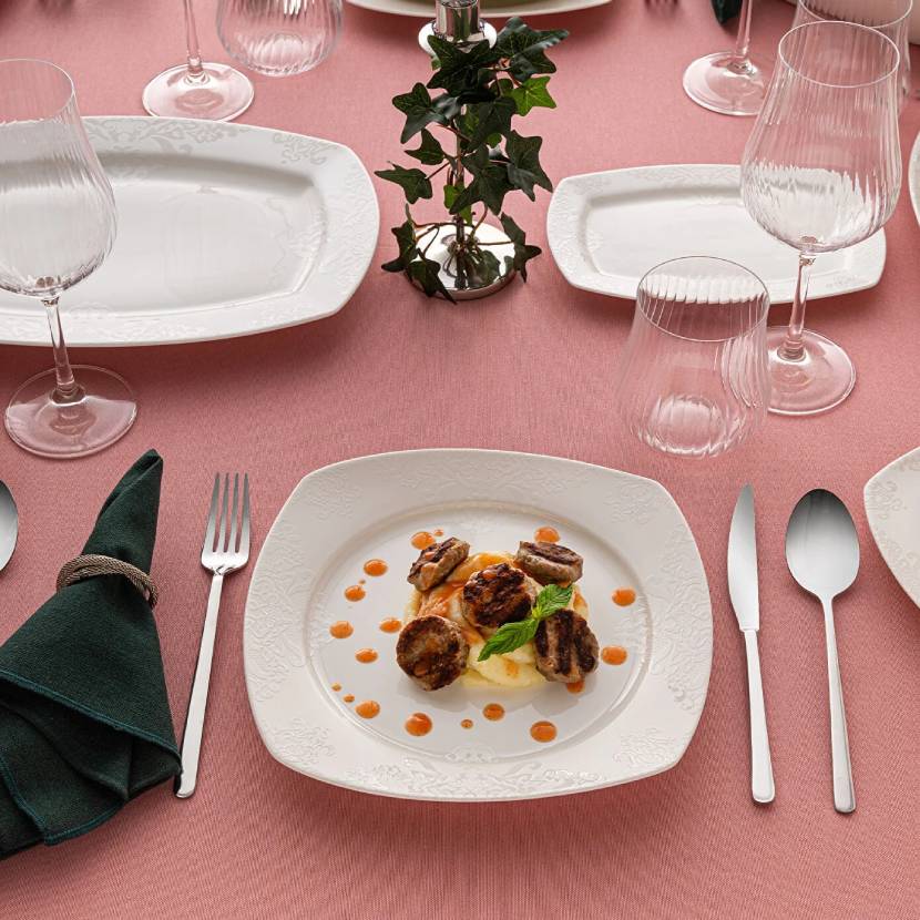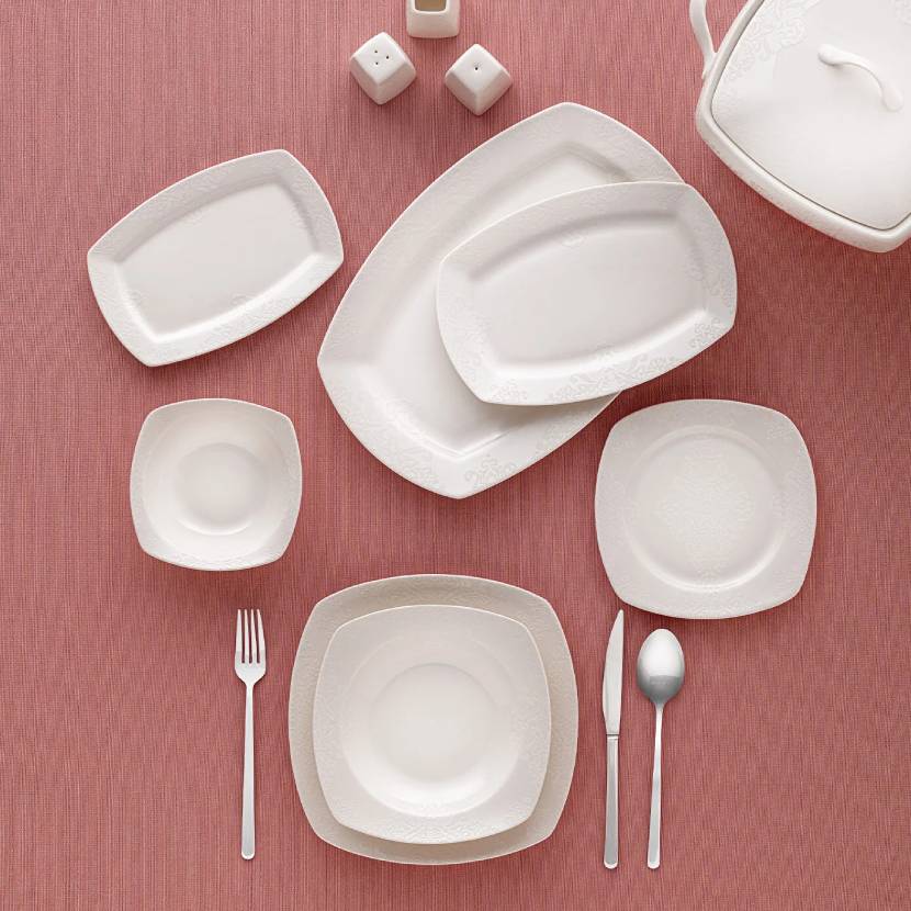 Emsan Bone Yeni Begonya 12 Kişilik Yemek Takımı 60 Parça Yarım Kare