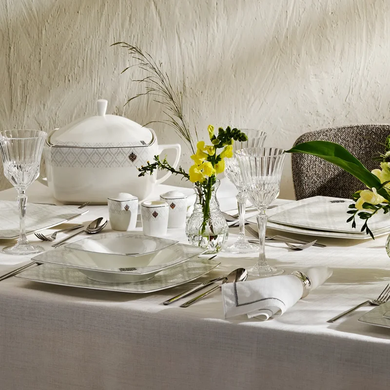 Karaca Fine Pearl Ralya 62 Parça 12 Kişilik Yemek Takımı Kare