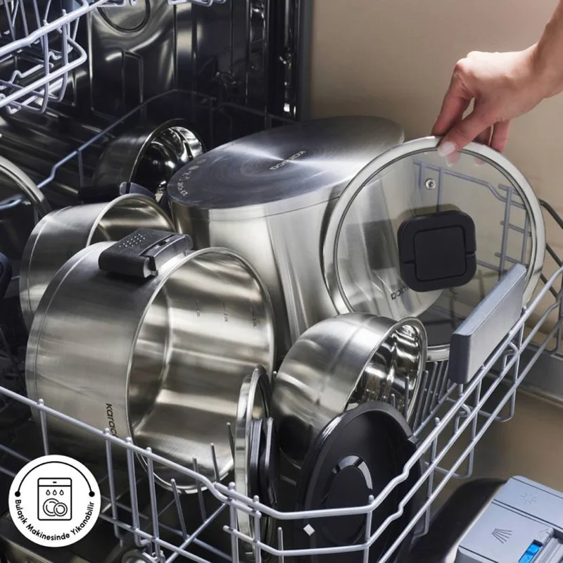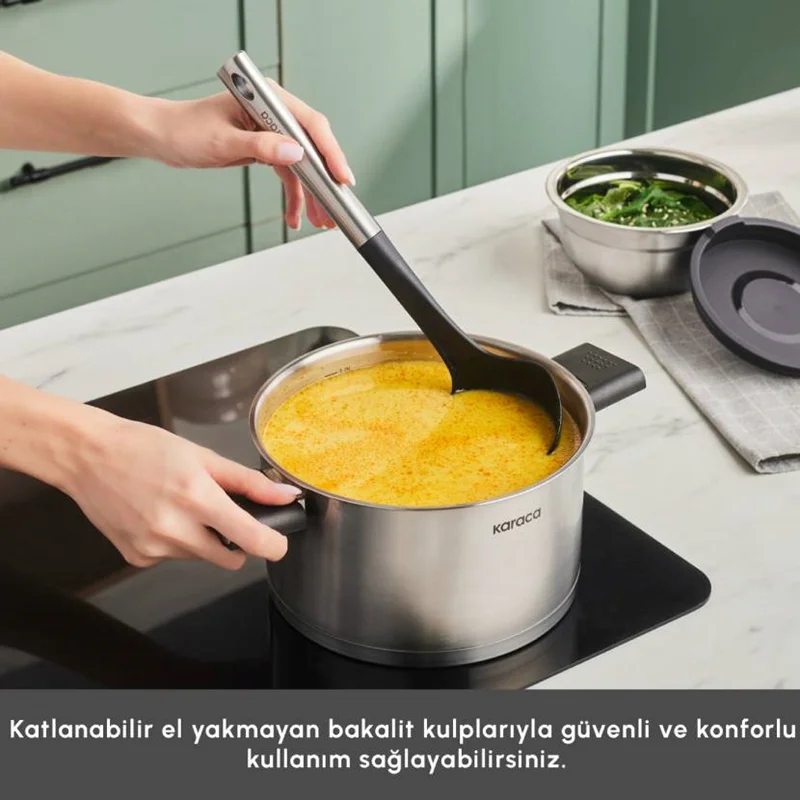 سرویس قابلمه استیل ۱۰ پارچه کاراجا آشیان (Karaca Aşiyan) که برای کسانی طراحی شده است که به دنبال ظرافت، کارایی و دوام در آشپزخانه هستند، تجربه آشپزی را ارتقا میدهد. ساختار استیل ضد زنگ ۱۸/۱۰ با کیفیت بالا، سختافزار گسترده و سازگاری با شعلههای چندگانه، این سرویس را به وسیلهای ضروری برای هر آشپزخانهای تبدیل کرده است.