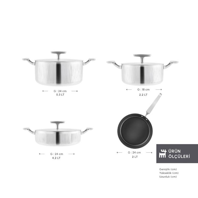 Karaca Plasma Steel 316+ 3Ply Apollo İndüksiyon Tabanlı 7 Parça Çelik Tencere Seti