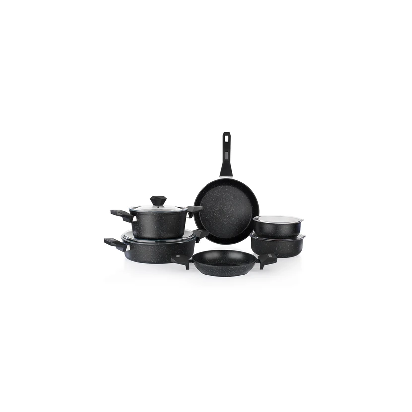 - سرویس قابلمه شافر مدل راک استون، مجموعهای 10 پارچه با پوشش گرانیتی مقاوم است که پخت یکنواخت و نظافت آسان را فراهم میکند. مناسب برای پختوپز روزمره و آشپزی سالم.