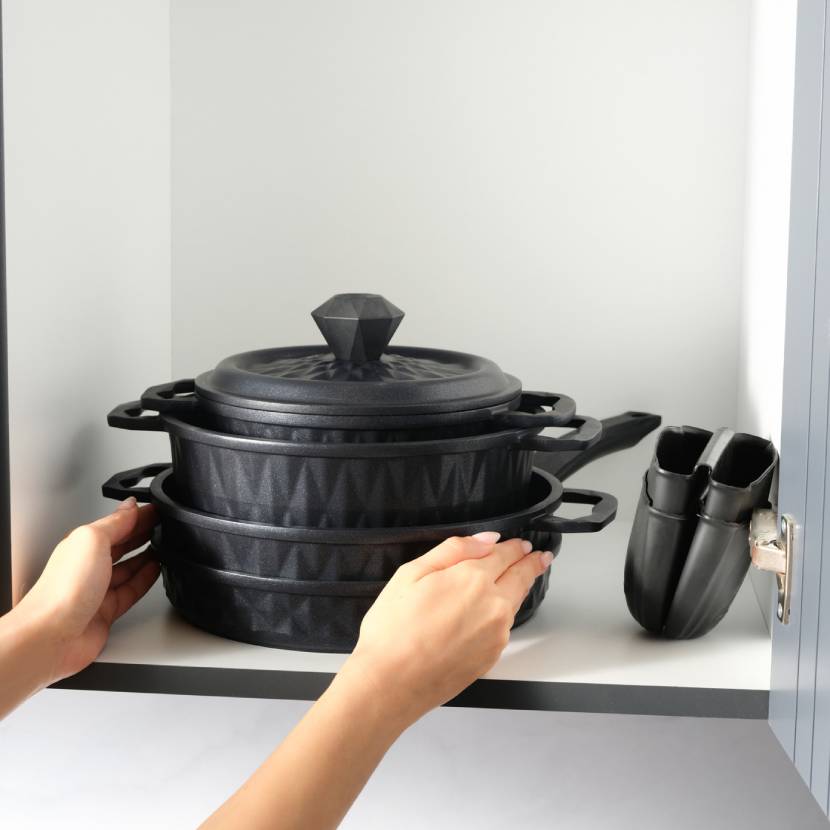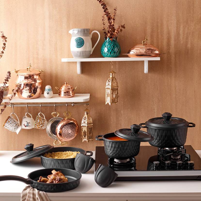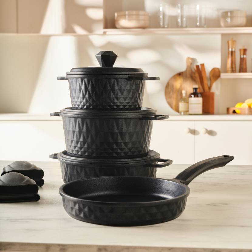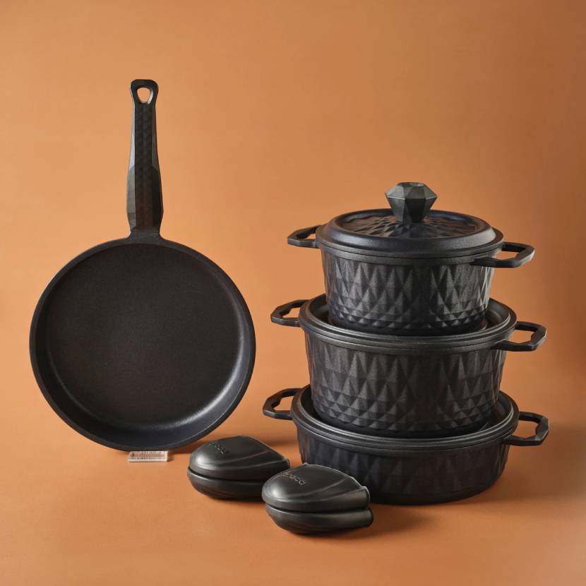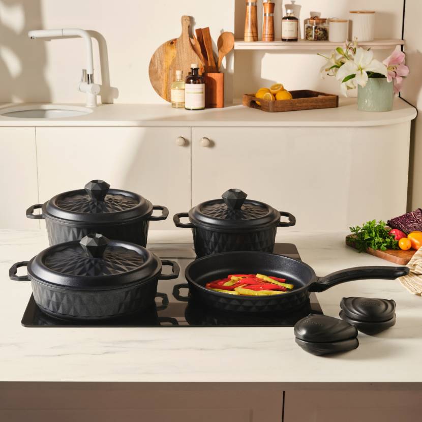 Karaca BioDiamond Döküm 7 Parça Fırın Eldiveni Hediyeli Tencere Seti