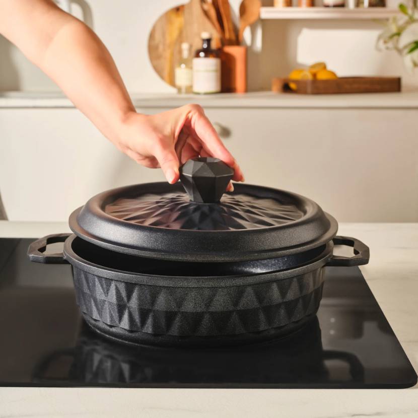 پوشش الماس فوقالعاده بادوام: سطوح داخلی و خارجی آن با یک پوشش الماس مخصوص تقویت شده است که در برابر خراش بسیار مقاوم است. به لطف حداکثر خواص نسوز و نچسب بودن آن، غذاهای شما هم سالمتر و هم خوشمزهتر پخته میشوند.