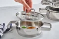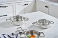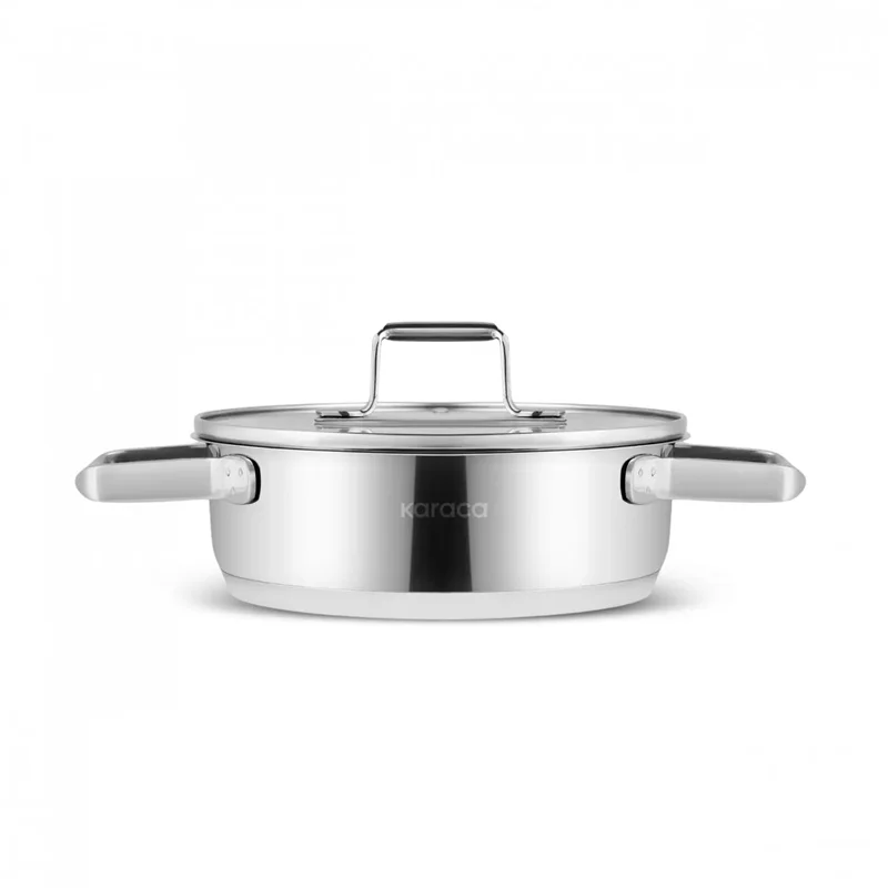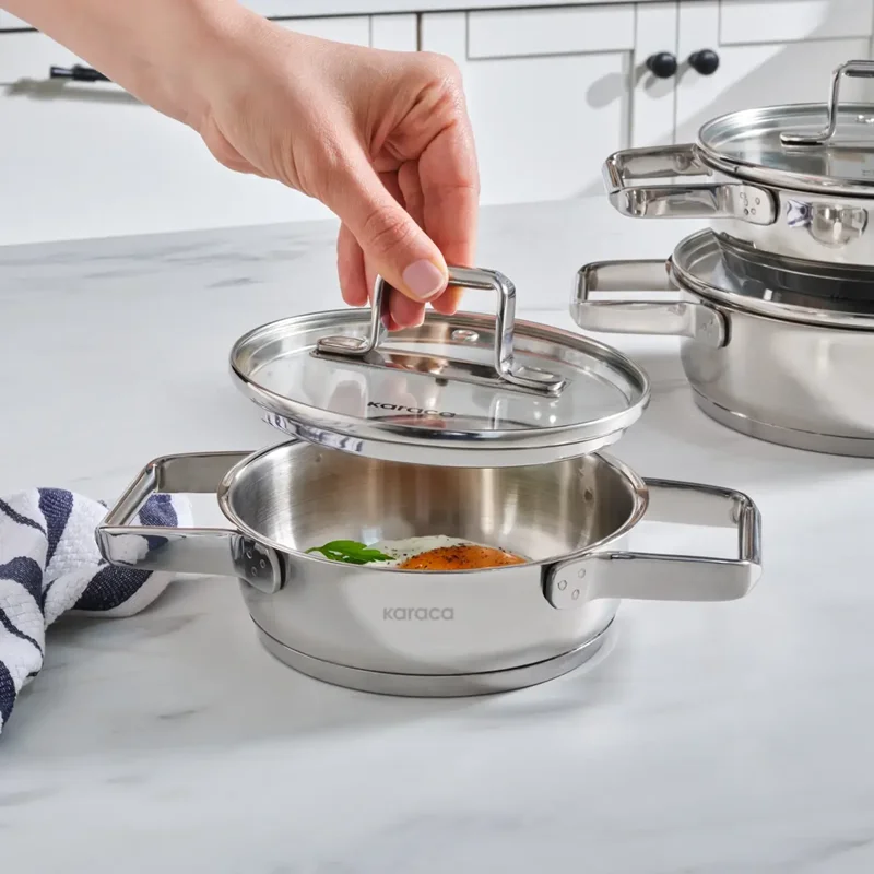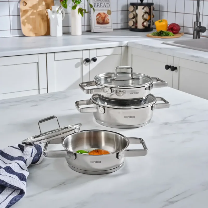 سرویس ماهیتابه استیل 6 پارچه کاراجا والورا با توزیع یکنواخت حرارت طعم غذاها را افزایش می دهد. با ارائه یک استفاده سالم و طولانی مدت، سطح فولاد ضد زنگ آن با محتوای گسترده، پوشش مقاوم در برابر حرارت و دسته های فلزی شیک، گرما را برای مدت طولانی حفظ می کند.