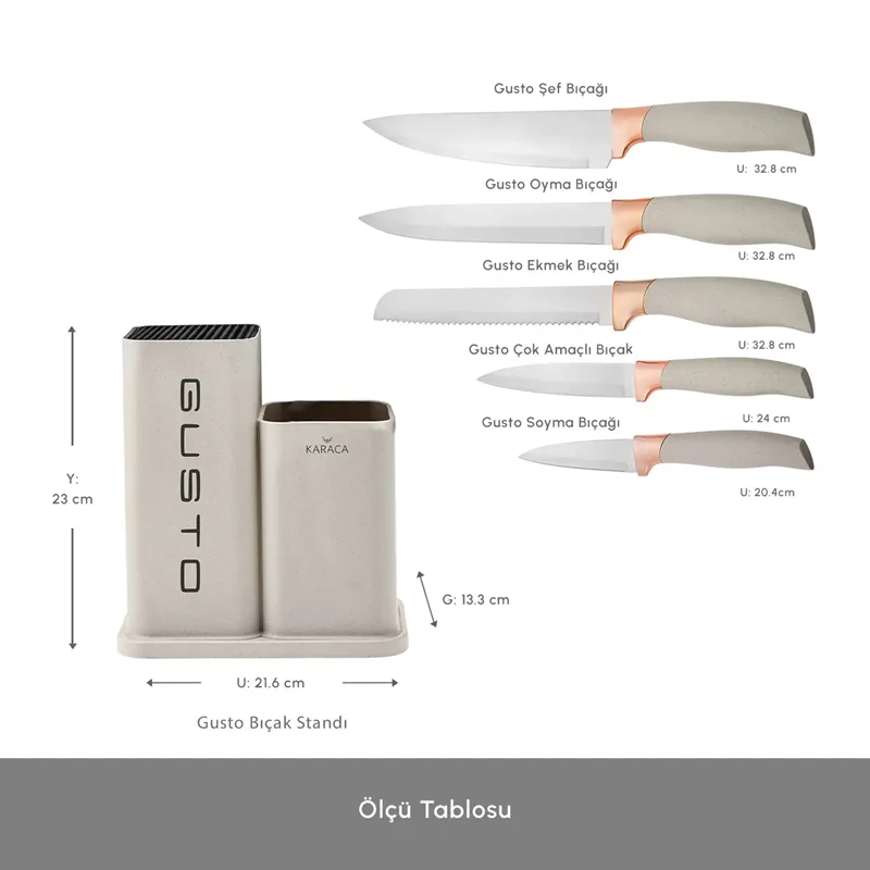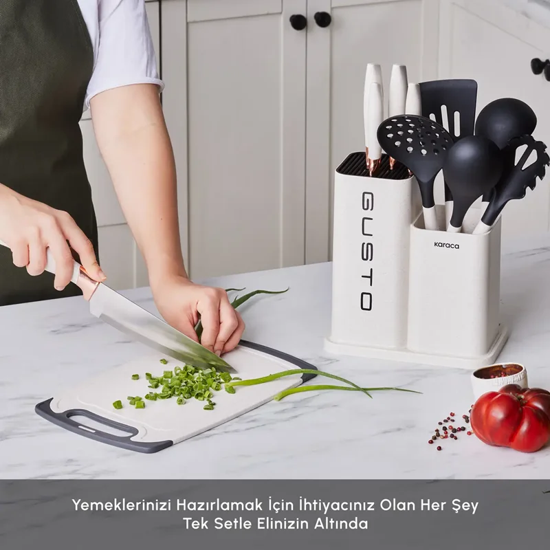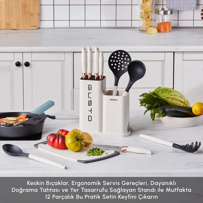 Karaca Gusto Krem 12 Parça Bıçak Servis Kesme Tahtası Seti
