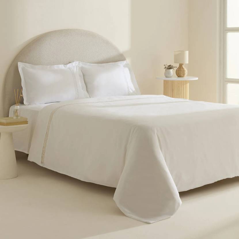 Karaca Home Lumi 80 Tel %100 Pamuk Saten Güpürlü Çift Kişilik Nevresim Takımı Beyaz