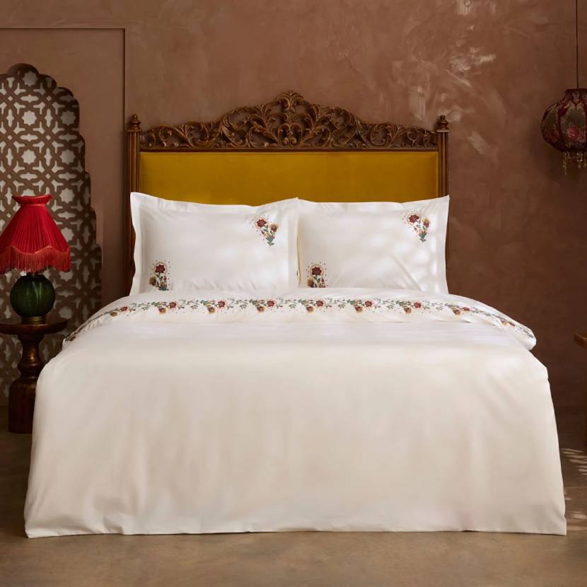 Karaca Home Dornel %100 Pamuk Nakışlı Çift Kişilik Nevresim Takımı Beyaz