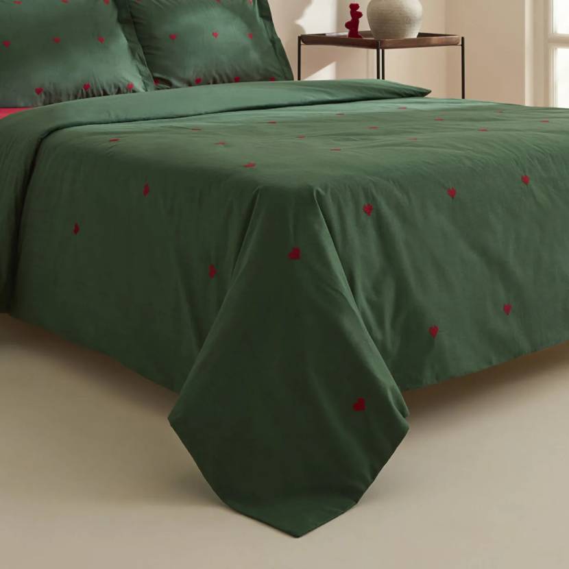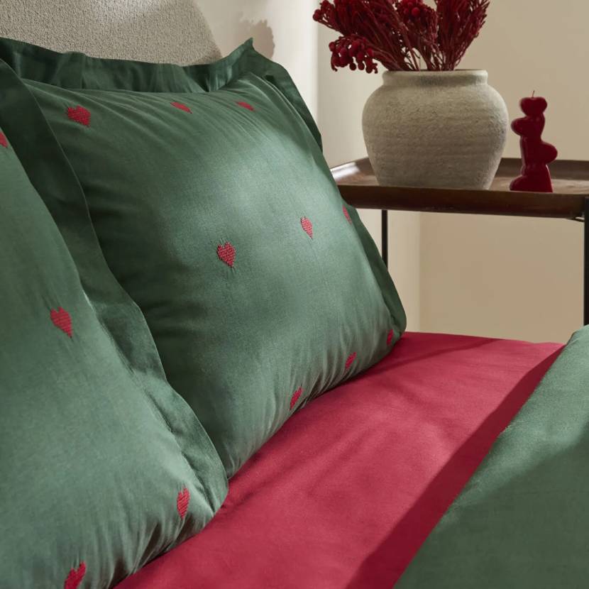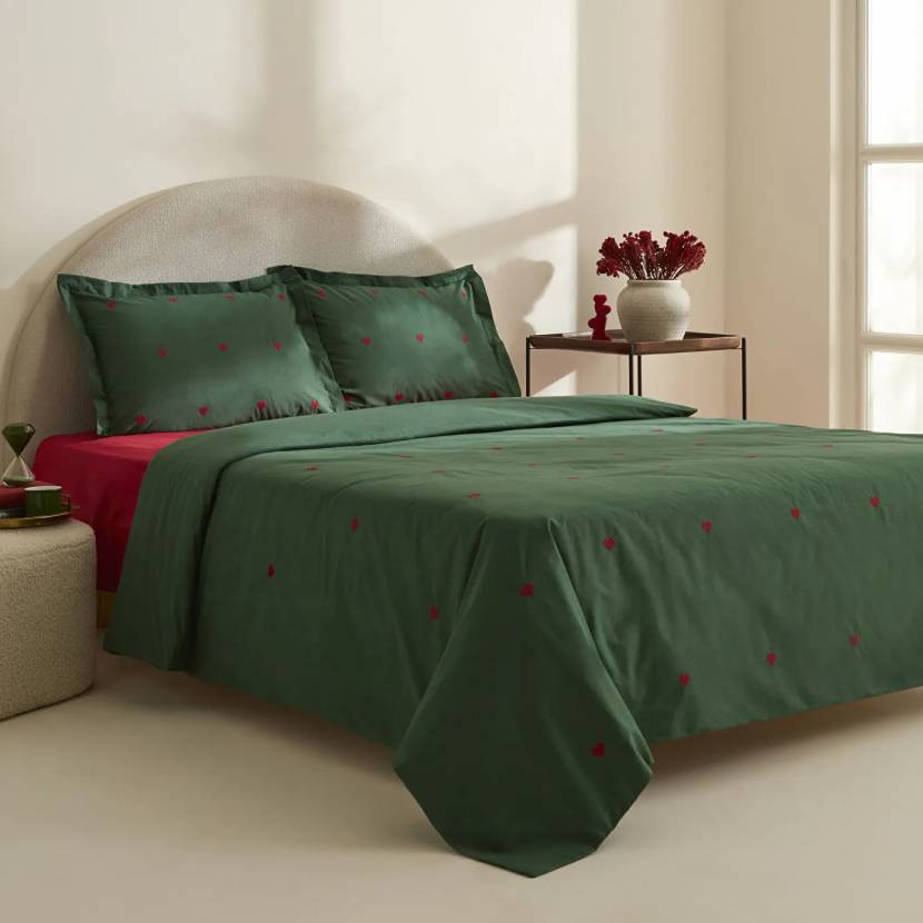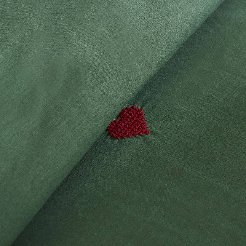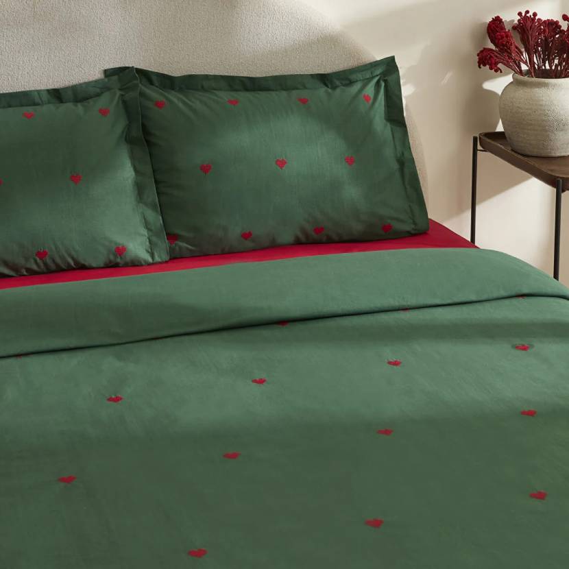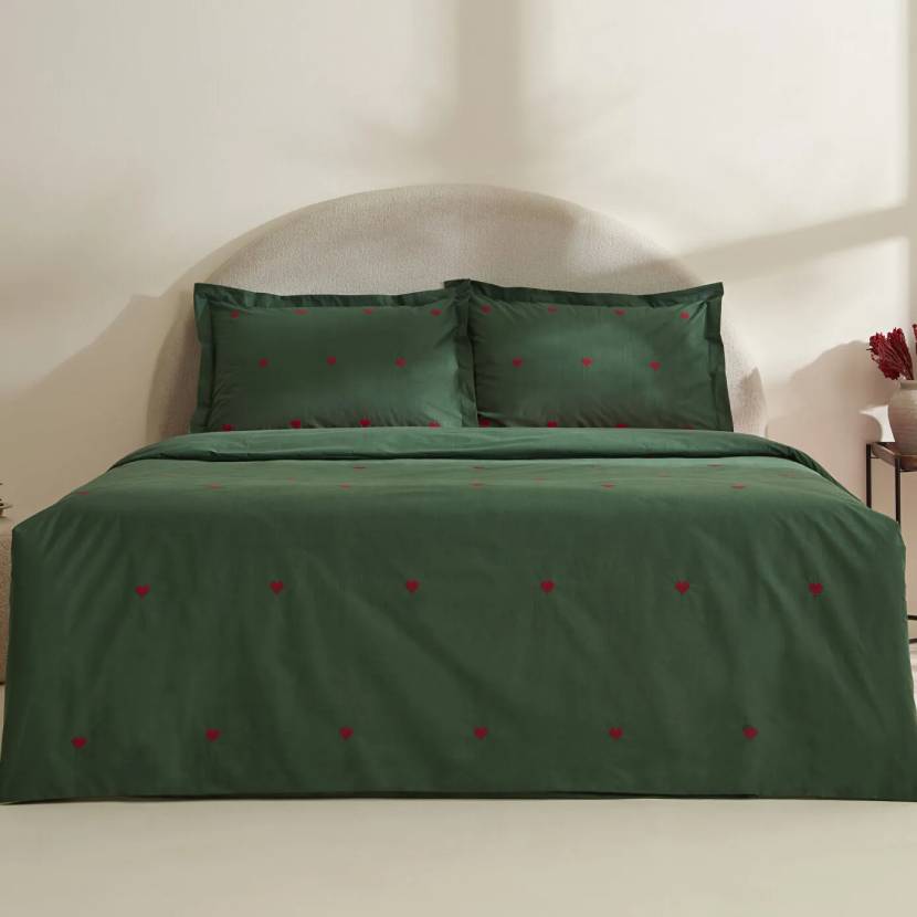 Karaca Home Amour Mio %100 Pamuk Çift Kişilik Nakışlı Nevresim Takımı Koyu Yeşil