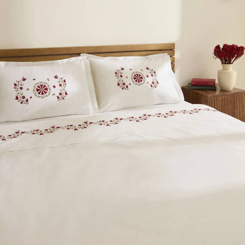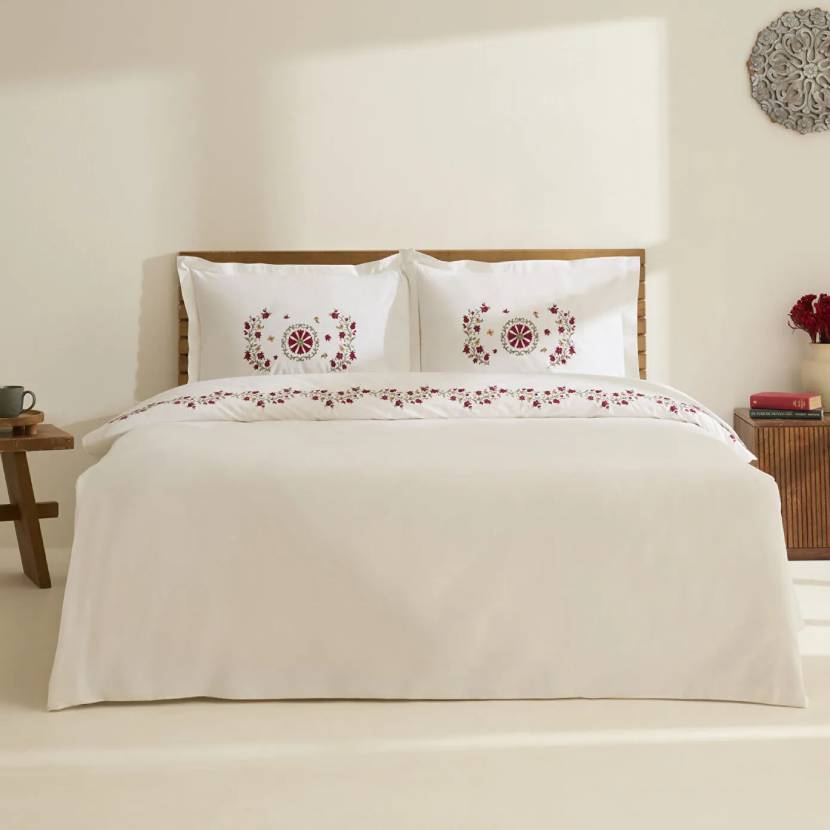 Karaca Home Layali Nakışlı Çift Kişilik Nevresim Takımı Beyaz