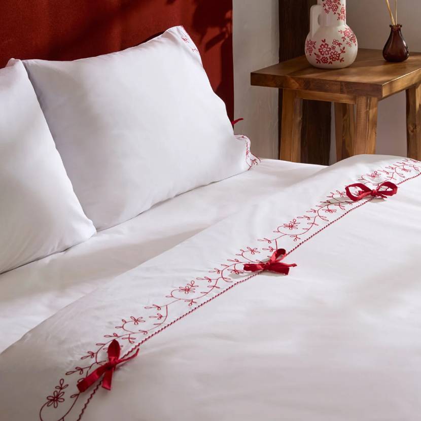 Karaca Home Calia %100 Pamuk Nakışlı Çift Kişilik Nevresim Takımı Beyaz