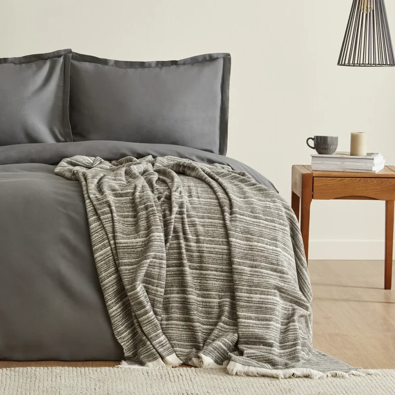 Karaca Home Weena Çift Kişilik Krep Nevresim Jakar Pike Takımı Gri