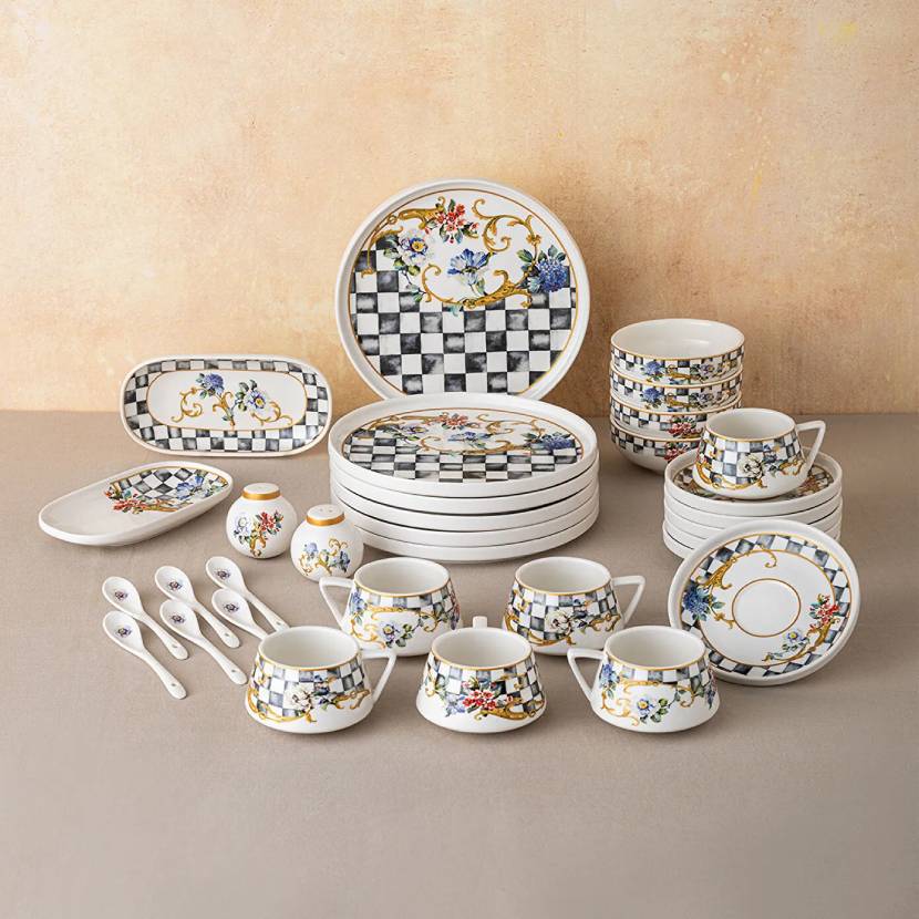 • طرح‌های هندسی و انتزاعی: طرح‌های هندسی و انتزاعی با خطوط منحنی و اشکال هندسی به سرویس‌های صبحانه خوری ظاهری مدرن و هنری می‌بخشند.