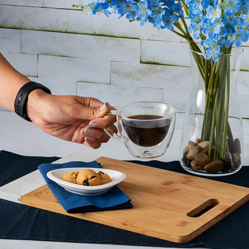 فنجانهای شیشهای شفاف بوده و زیبایی خاصی به ارائه قهوه میبخشند. این فنجان قهوه خوری کوچک شیشه ای، بیشتر برای قهوههایی مثل لاته یا کاپوچینو استفاده میشوند که لایههای مختلف آنها قابل مشاهده است.