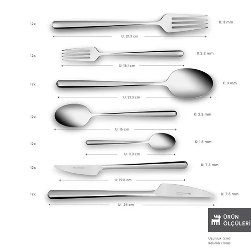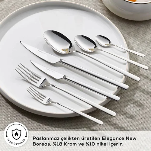 Karaca سرویس قاشق چنگال 84 پارچه 12 نفره کاراجا الگانس نیو بورئاس نقره ای