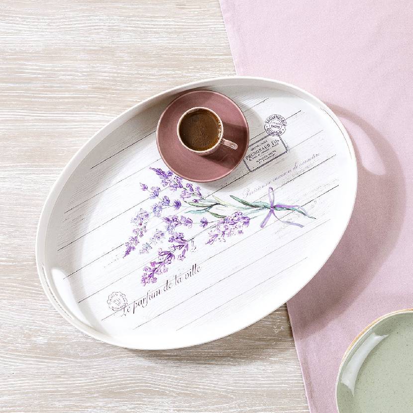 سینی بیضی شکل Lavander که به شما امکان میدهد خوراکیهایی مانند چای و قهوه را با خیال راحت برای مهمانان خود ببرید، با سطح ساده خود خیرهکننده خواهد بود. به لطف شکل جمع و جور آن، این سینی پذیرایی فضای زیادی را در آشپزخانه شما اشغال نمیکند و از مزایای مادام کوکو نیز بهره میبرد.