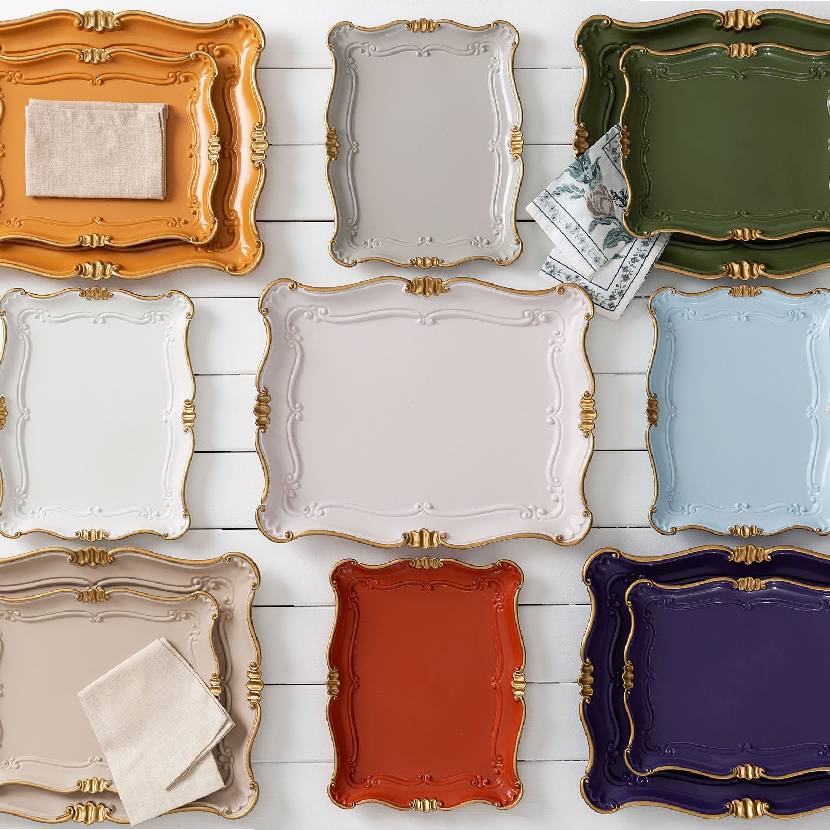 این سینی مستطیلی پر جنب و جوش، با الهام از رنگهای شاد گلهای رنگارنگ، با لبههای موجدار و جزئیات طلایی خود، به هر هدیهای که برای عزیزانتان تهیه میکنید، جلوهای از ظرافت میبخشد. محصولاتی که مکمل ظرافت شما خواهند بود، در مادام کوکو منتظر شما هستند.