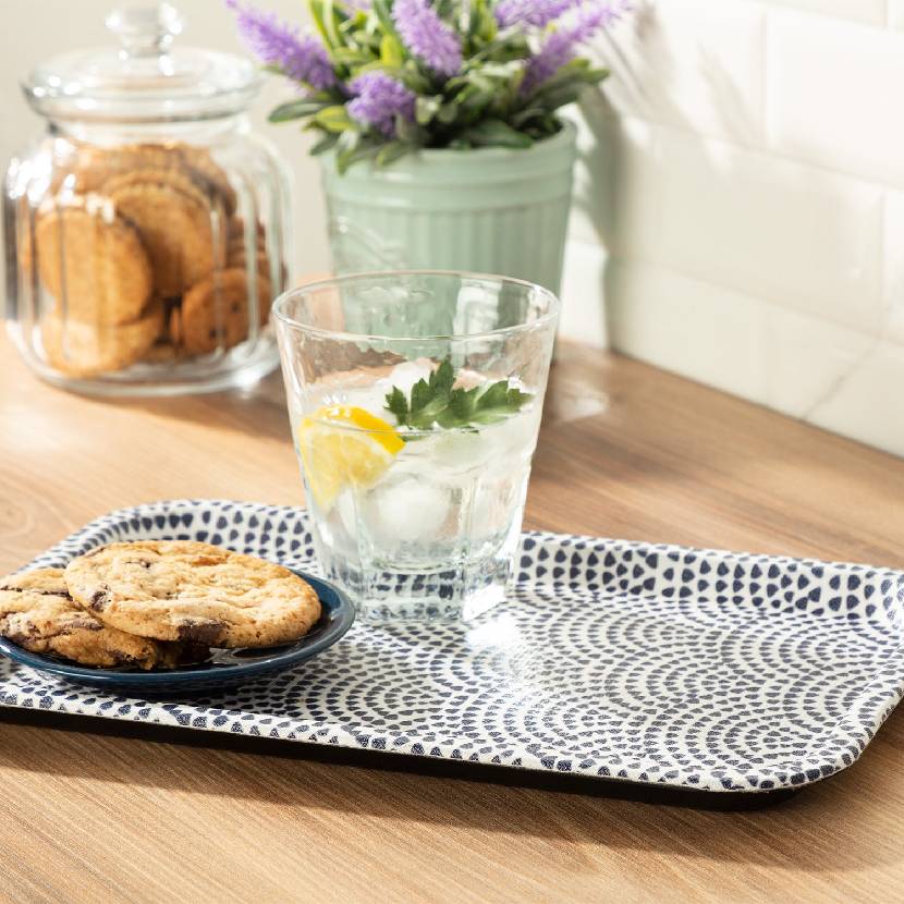 با سینی مستطیلی ضد لغزش Rêve Bleu Baisse، تهیه خوراکیهای خوشمزهتان حالا به راحتی امکانپذیر است. رنگهای آبی و سفید شیک و طراحی ارگونومیک آن به شما این امکان را میدهد که هنگام سرو نوشیدنی برای خود یا مهمانانتان، به راحتی و بدون مشکل تعادل حرکت کنید.