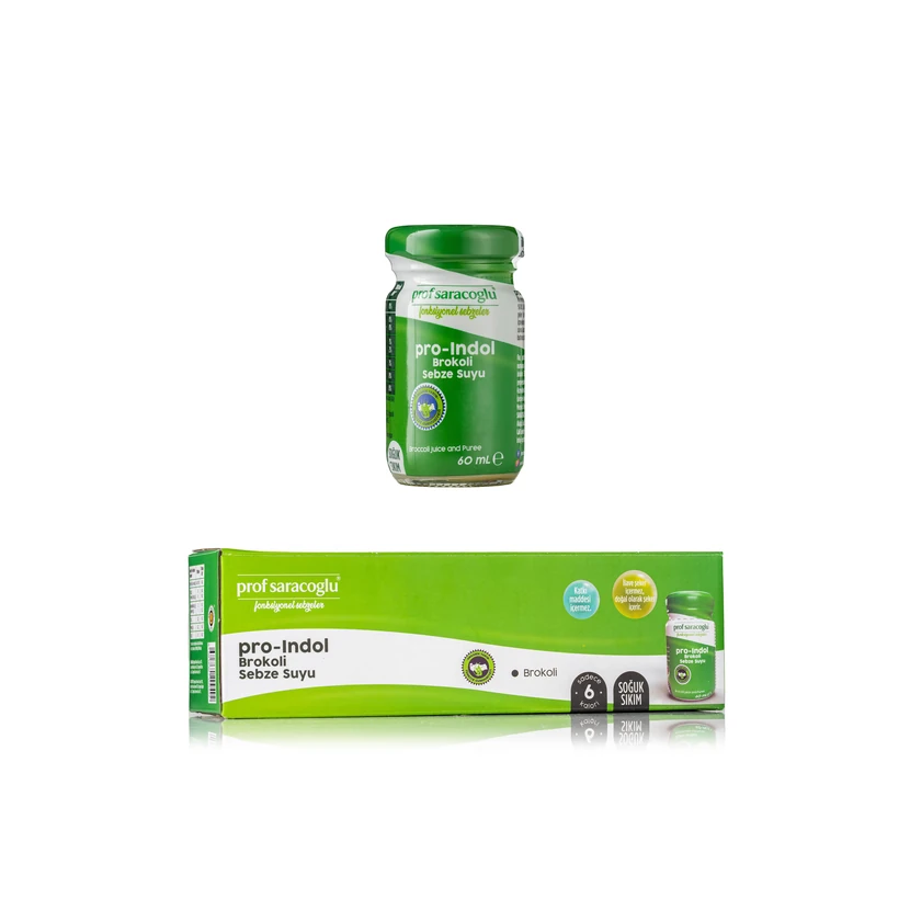 - شات بروکلی پرو ایندول پروفسور ساراچاوغلو یک مکمل مایع گیاهی با فرمول الهامگرفته از بروکلی است که در بسته ۵ عددی و هر شات ۶۰ میلیلیتر عرضه میشود. این محصول برای افرادی طراحی شده که به دنبال راهکاری ساده، سریع و قابل حمل برای گنجاندن عصارههای گیاهی در برنامه روزانه خود هستند.