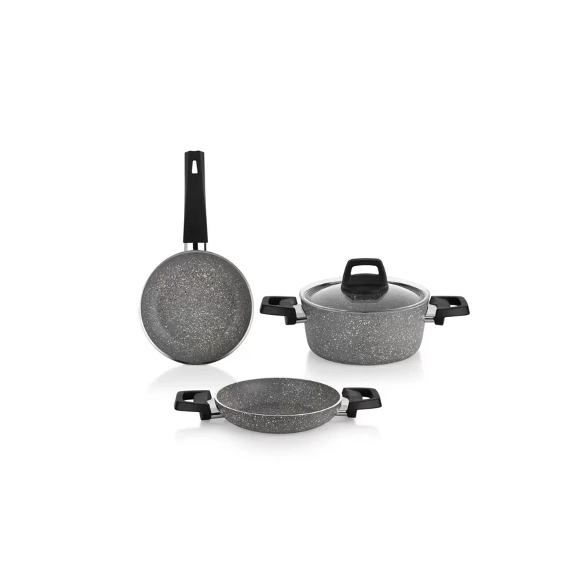 - ست ۳ پارچه شافر مدل اِترنال با پوشش گرانیتی و قطر ۱۸ سانتیمتر؛ مناسب پخت روزمره، پخش یکنواخت حرارت و مقاومت بالا. ضدباکتری و نگهداری آسان—قبل از خرید به سایز و سازگاری با اجاق توجه کنید.