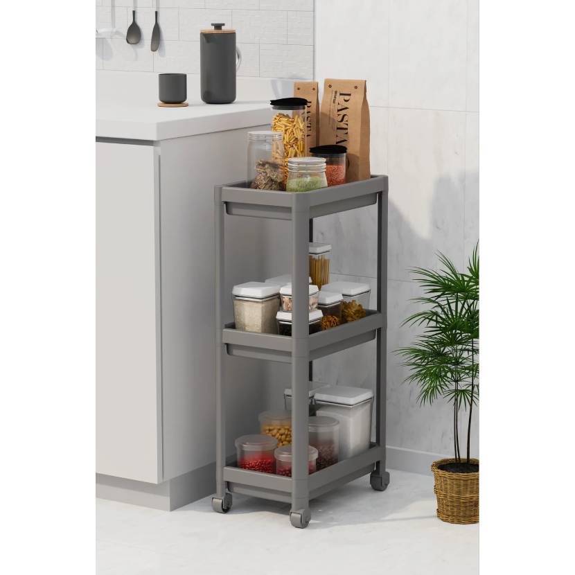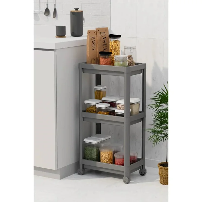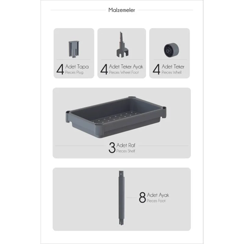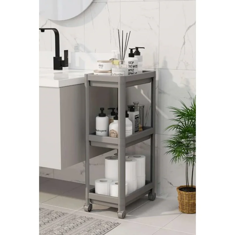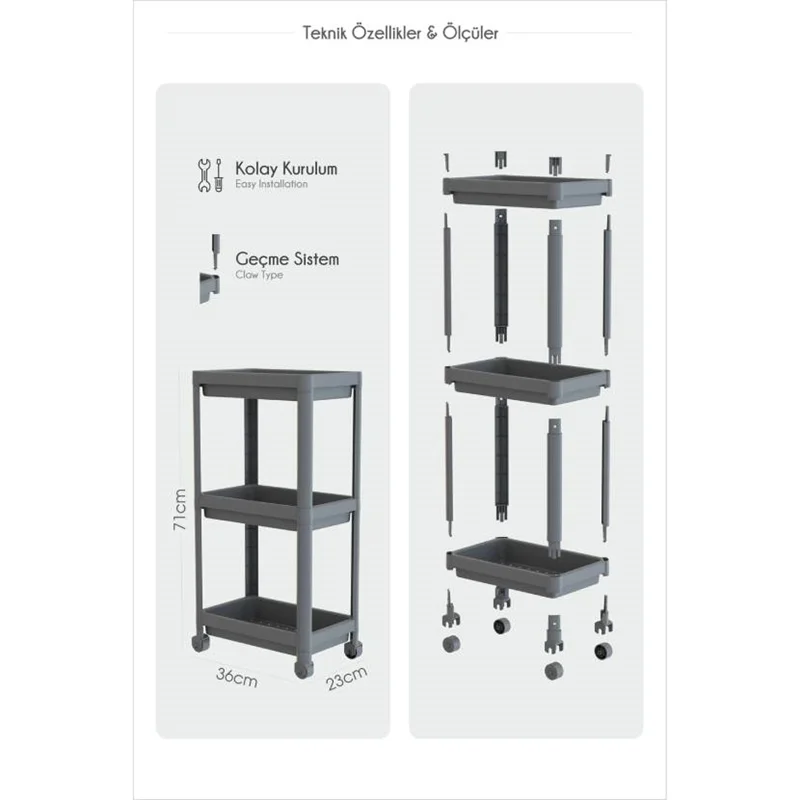 Omaş Household Product 3 Katlı Banyo Raf Ünitesi (PEGGY) Beyaz Banyo Düzenleyici Şampuanlık Havluluk Dolap ( Gri )