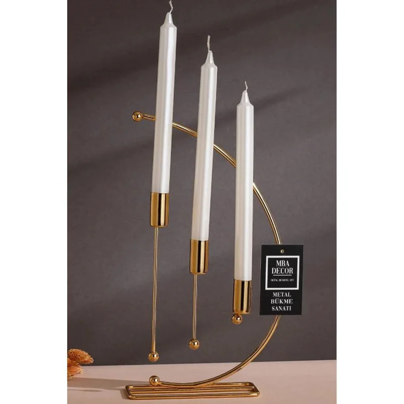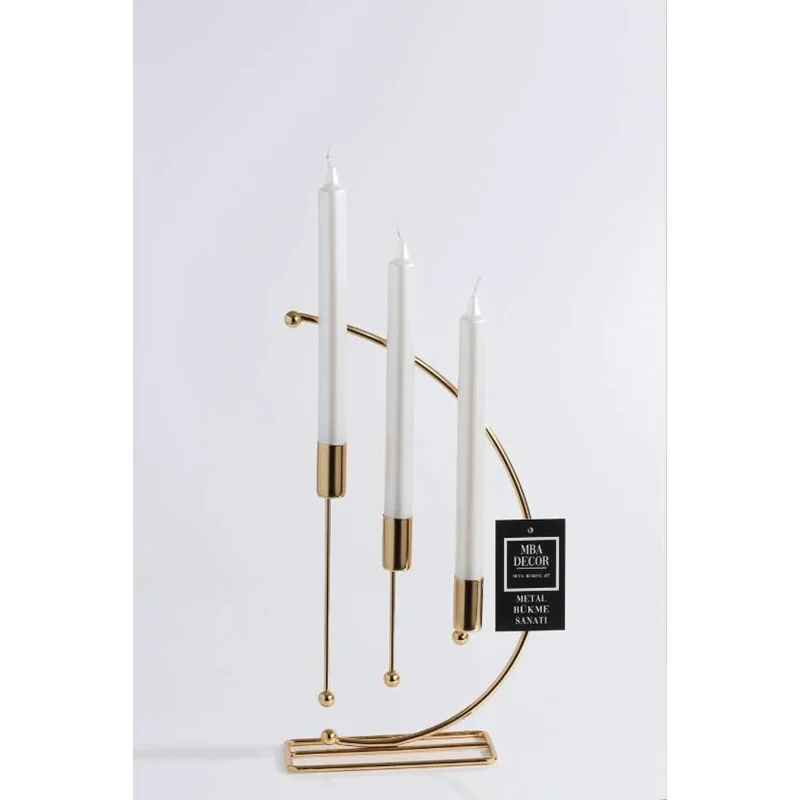 mba decor metal bending art Nota Model Metal 3 Lü Şamdan Üçlü Mumluk Dekoratif Mumluk 25cm Paslanmaz Gold Kaplama Ev Dekorasyon