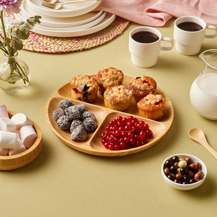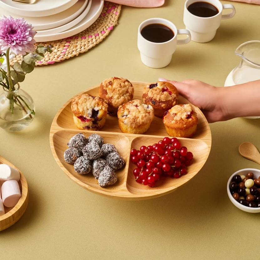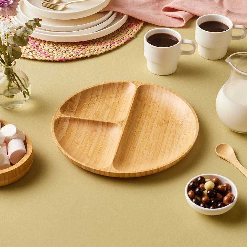 ظرف سرو چوبی دایره 3 قسمتی کاراجا مدل بامبو نورا
