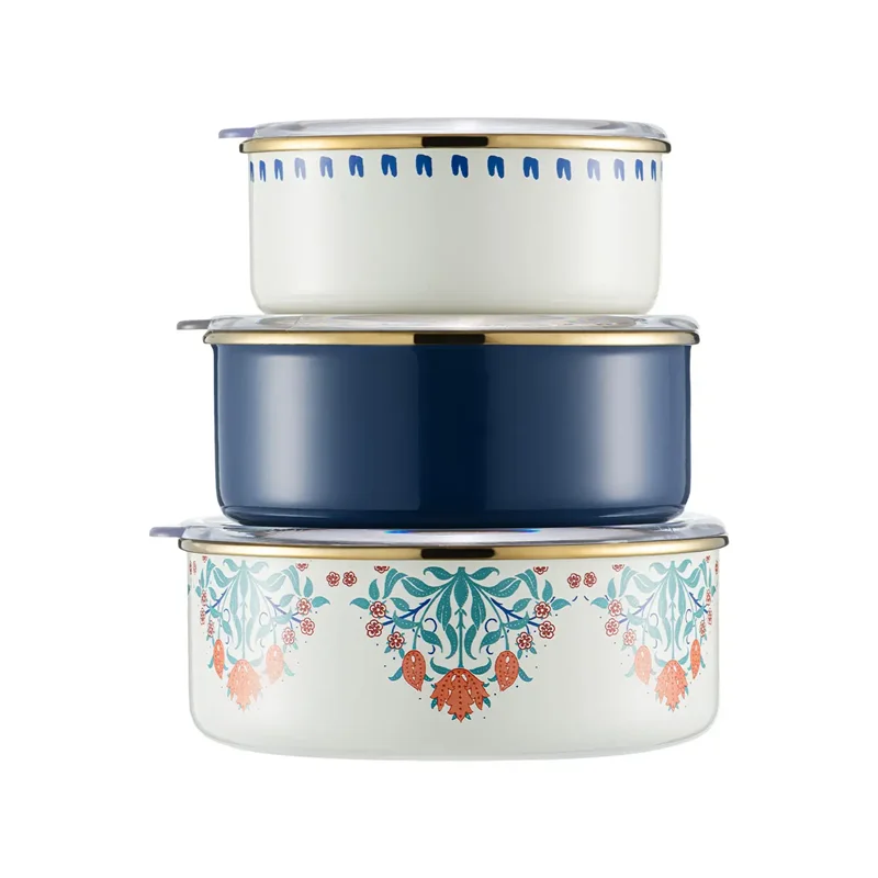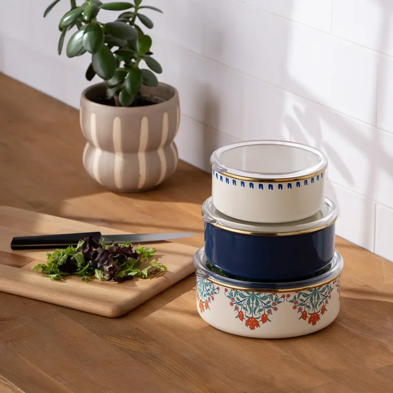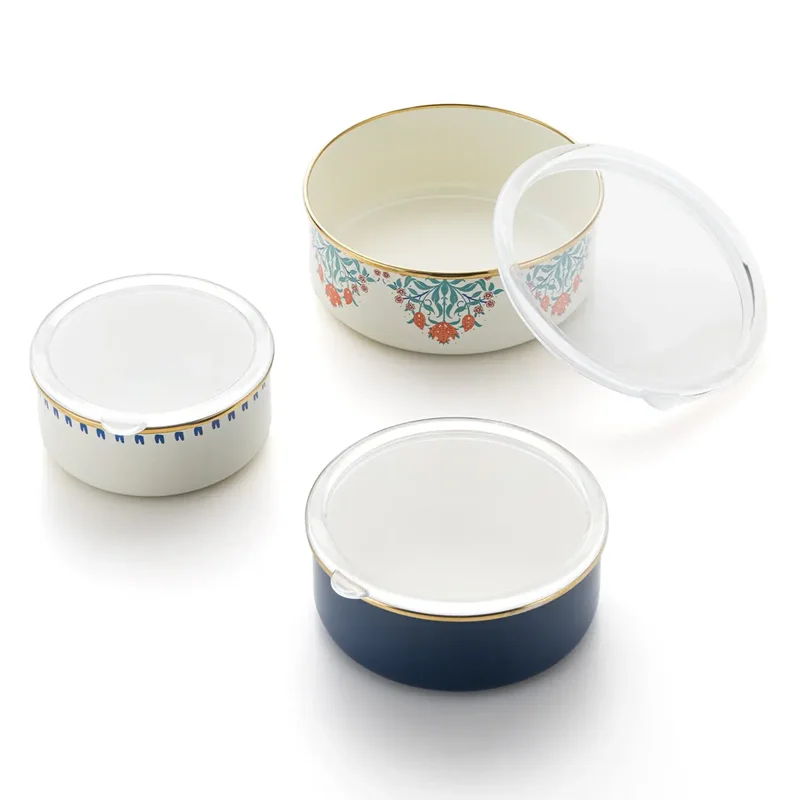 Emsan Hasbahçe 3'lü Emaye Saklama Kabı