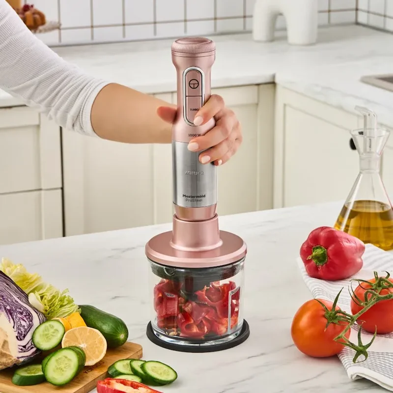 با ست بلندر Mastermaid ProSteel در آشپزخانه شگفتی ایجاد کنید! همه دستور العمل های مورد نیاز خود را به راحتی تهیه کنید، از غذاهای خرد شده تا اسموتی های صاف، از خامه فرم گرفته تا سوپ های عالی.
