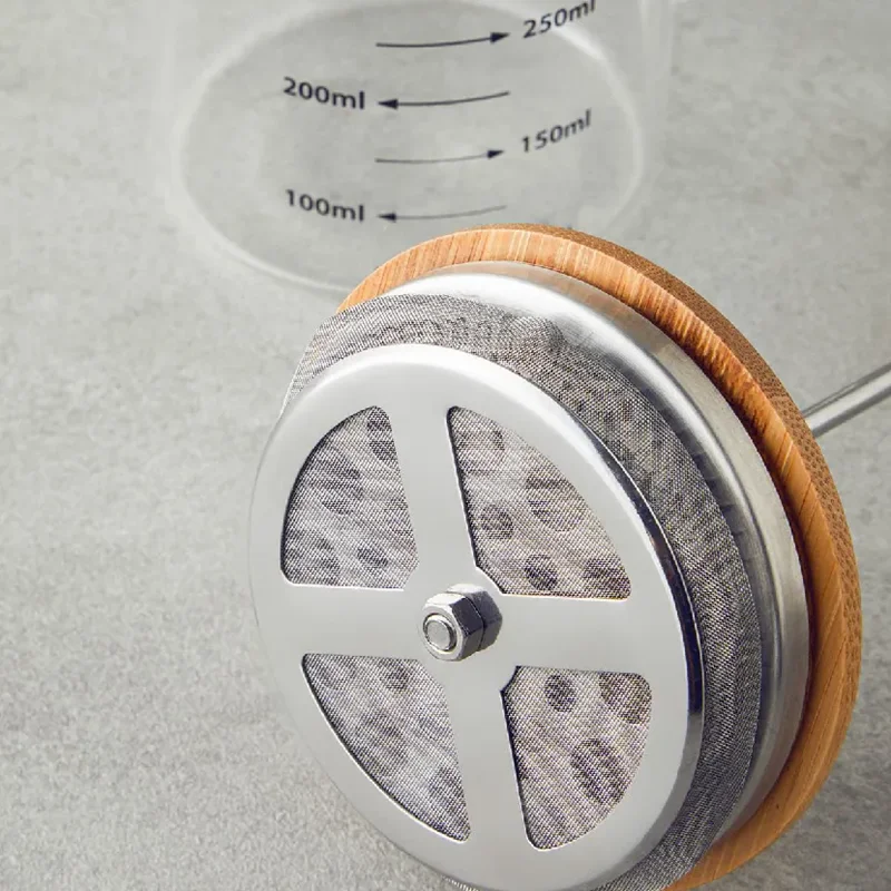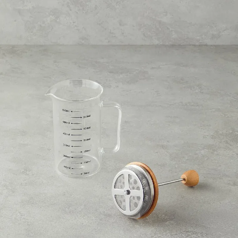 English Home Brew Borosilikat Bambu Kapaklı French Press 600 ml Şeffaf