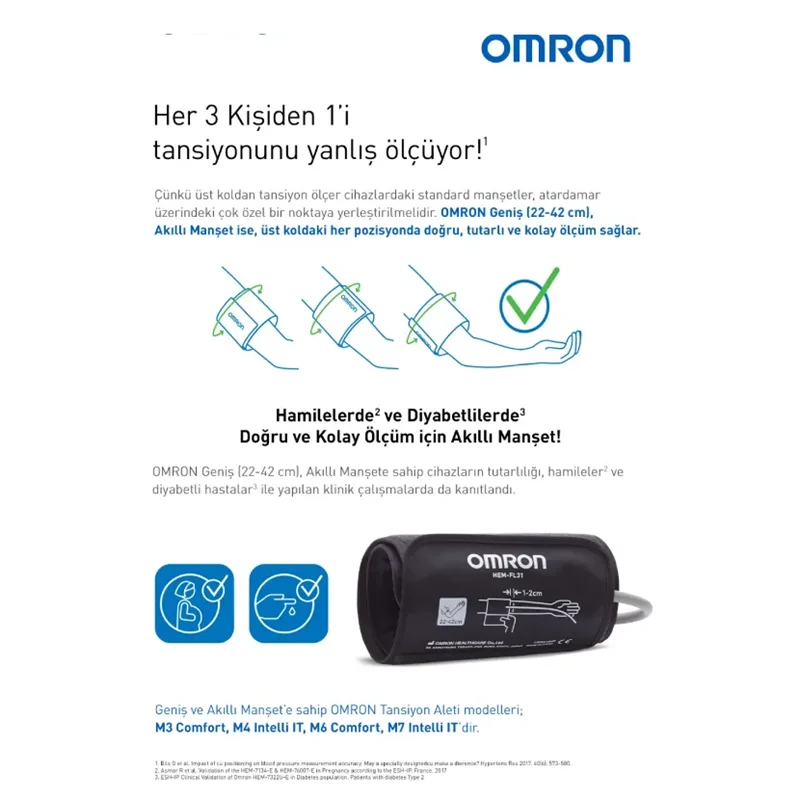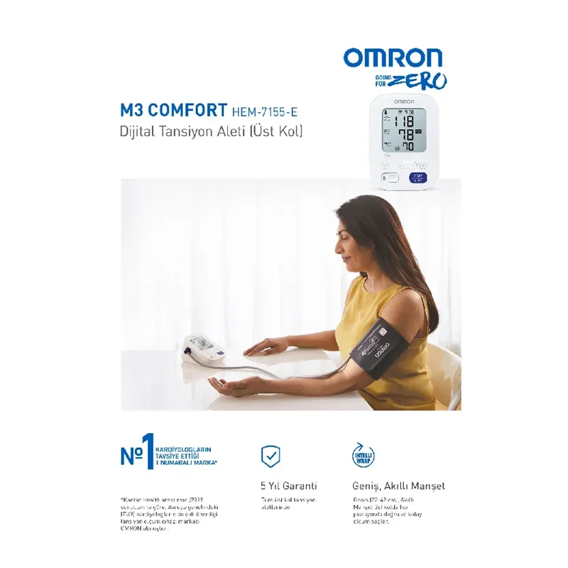 Omron M3 Comfort 2 Kullanıcı Hafızalı Manşetli Üst Koldan Ölçer Dijital Tansiyon Aleti HEM-7155-E