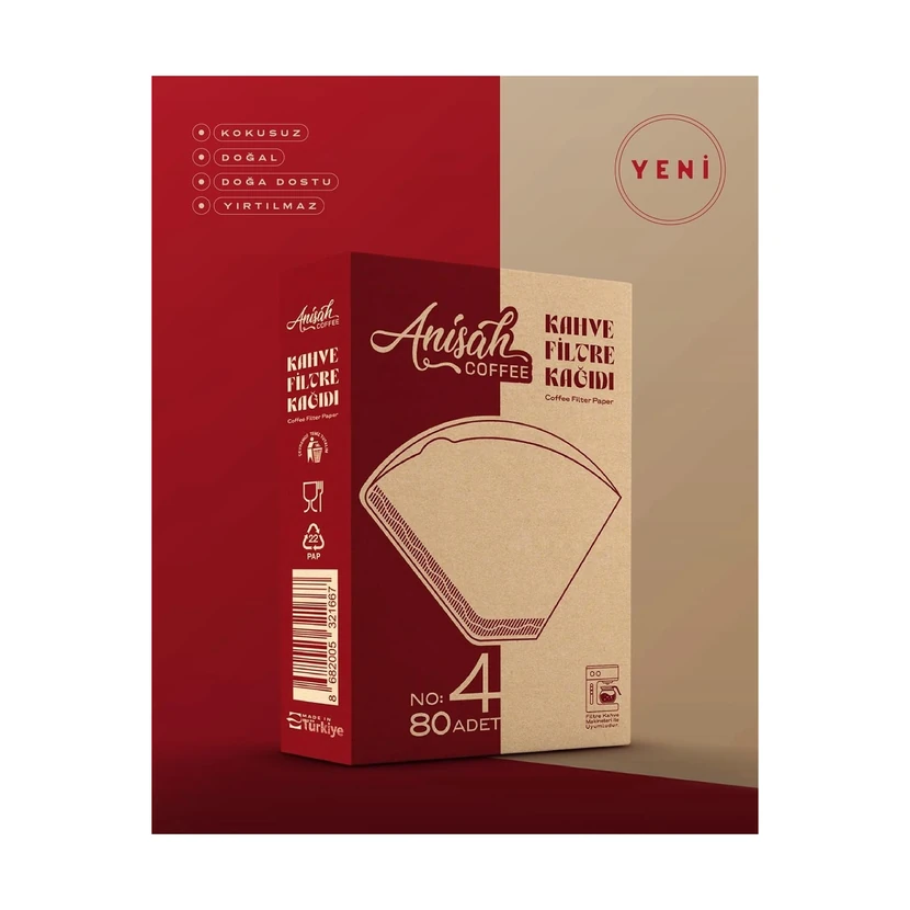 - فیلتر قهوه انیساه شماره 4 (80 عددی) فیلتر کاغذی با کیفیت برای دمآوری یکنواخت و طعم خالص قهوه. بدون بو و بدون مواد شیمیایی، دوستدار محیطزیست و مقاوم در برابر پارگی. انتخابی ایدهآل برای استفاده روزمره.