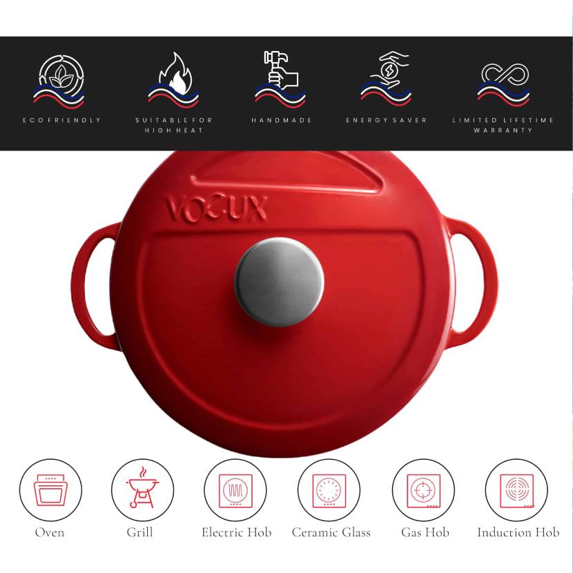قابلمه وو (Voeux) شما که از ۱۰۰٪ چدن ساخته شده است، به لطف تواناییاش در توزیع یکنواخت گرما، تمام ویتامینها، مواد معدنی و فیبر موجود در غذا را در حین پخت در آب خودشان حفظ میکند.