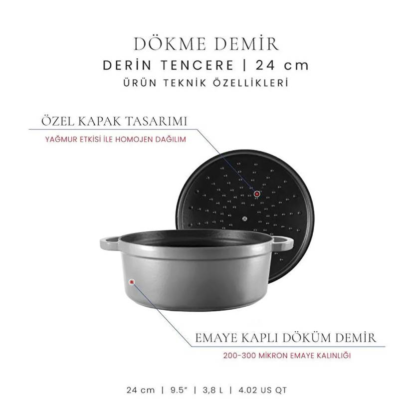 Voeux Kitchenware Voeux Gracieuse Derin Döküm Tencere 24 Cm Gri