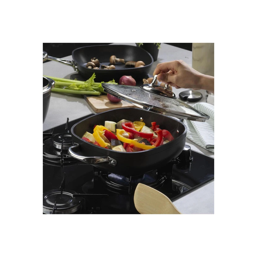 - کیفیت ساخت بالا و کف نچسب این قابلمه امکان پخت با روغن کمتر و تمیزکاری آسان را فراهم میکند؛ سازگار با انواع شعلهها و کاربردی برای خانواده.